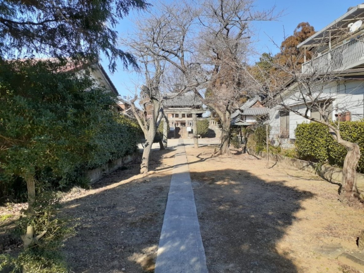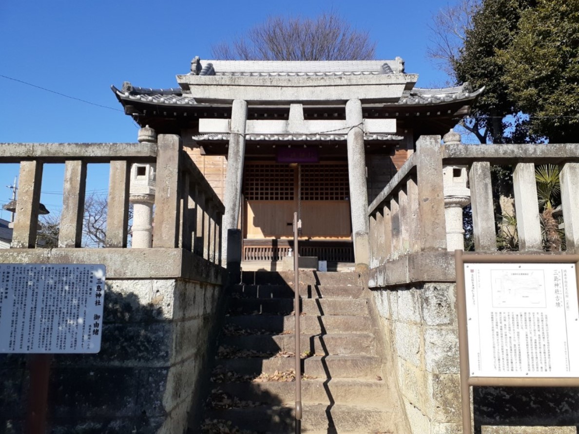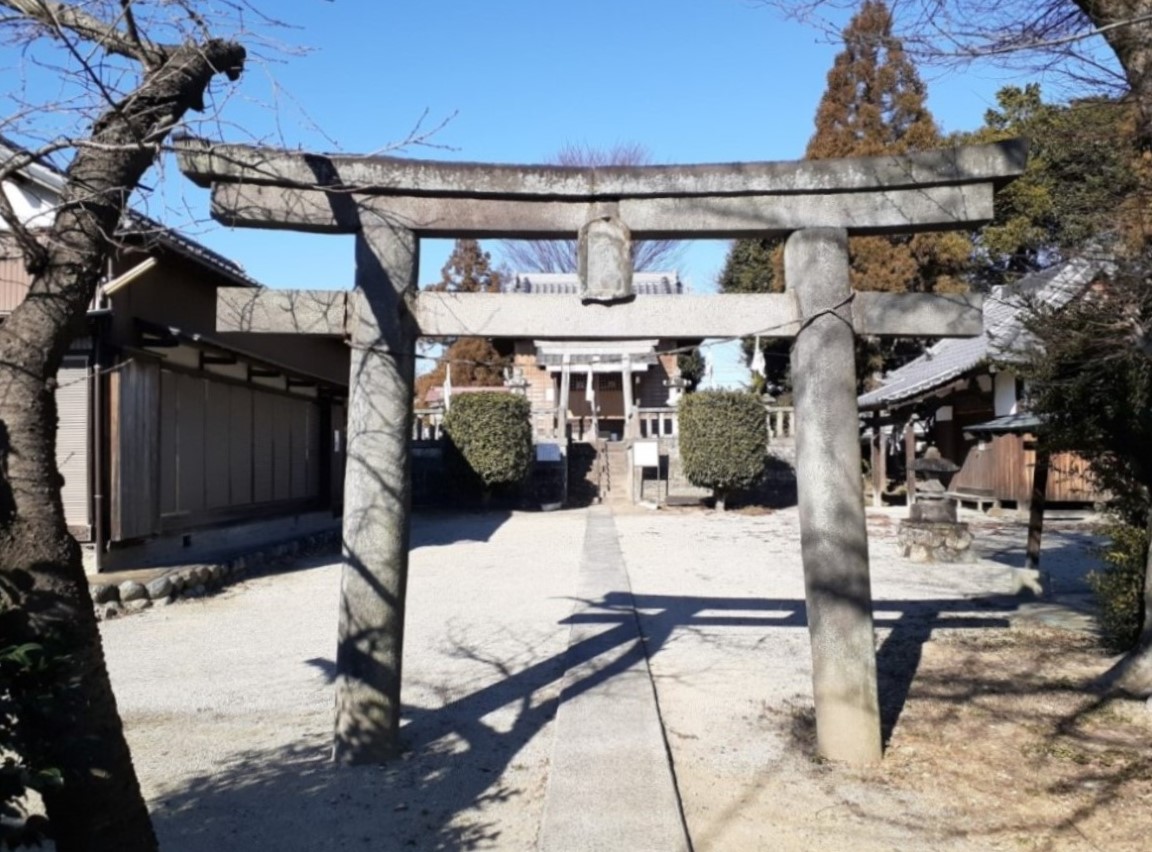 鳥居を過ぎると正面にこんもりとした社叢が見える。神社境内地の大部分が元は古墳だったのではないかと思ったが,案内板等では近郊の館である「関根氏館」に対して見渡せる小高い丘を選んで館の守護神として鎮座しているとの事だ。