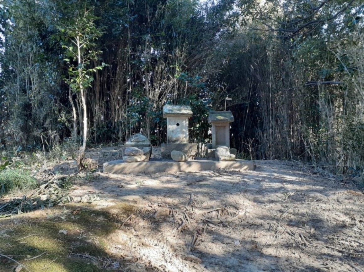 境内社 名称不明 社殿の左奥で丘の上に鎮座する末社群