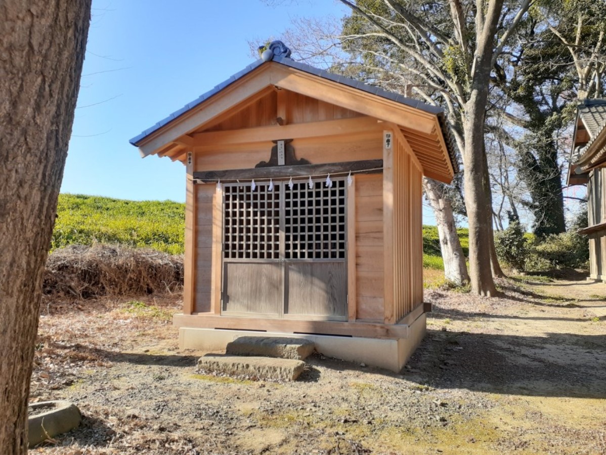 当社は、『明細帳』に「創立不明 同村鶴間弥五右衛門祭主ト古老ノ伝有(以下略)」と載る。恐らく、村の開発に携わった鶴間家により当社は勧請され、以後同家が代々祭主を務めたのであろう。当社は鶴間家から北東二〇〇メートルの位置にあり、同家の鬼門除けとして祀られたとも考えられる。