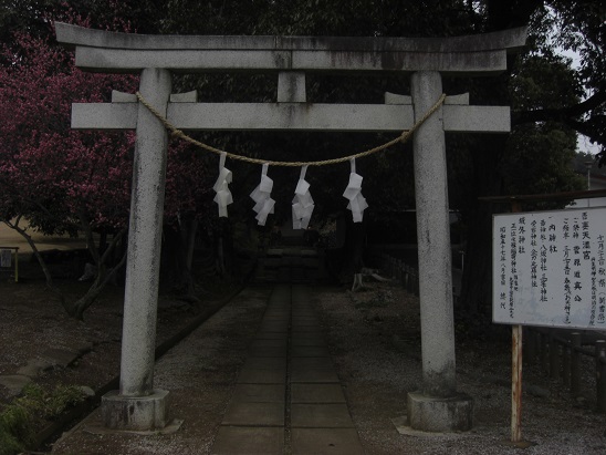 二の鳥居の傍らに岡谷加賀守清英を祀った祠。