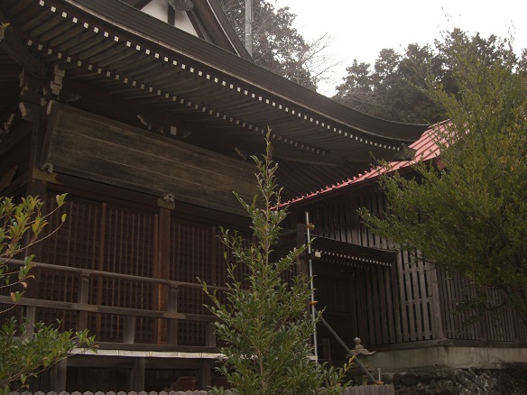 参道を進むと右側に御神木の大杉が聳え立つ(写真左・右)。