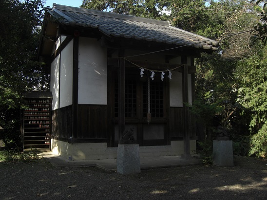 参道を過ぎると左側にある境内社 稲荷神社          鳥居の先にある稲荷神社拝殿