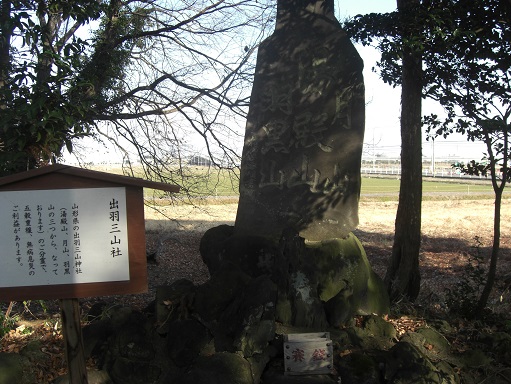 「雷電神社総本宮」と彫られた石碑 二の鳥居に左側にある由来書の看板
