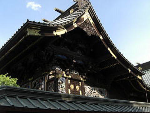 御祭神は火雷大神、大雷大神、別雷大神で、推古天皇6年(598)聖徳太子が天の神の声を聞いて、伊奈良の沼に浮かぶ小島に祠を設け、天の神をお祀りしたのが最初とされています。関東一帯の雷電神社の総本宮で、館林藩主・徳川綱吉公が延宝2年(1674年)に社殿を再建。以来、左三つ巴の紋章に併せ徳川家の三つ葉葵の紋章が使われている。現在の社殿は天保6年(1835年)の造営。左甚五郎10代目名人彫物師・石原常八の華麗な彫刻が装飾されたこの時代にしか見られない名建築である。