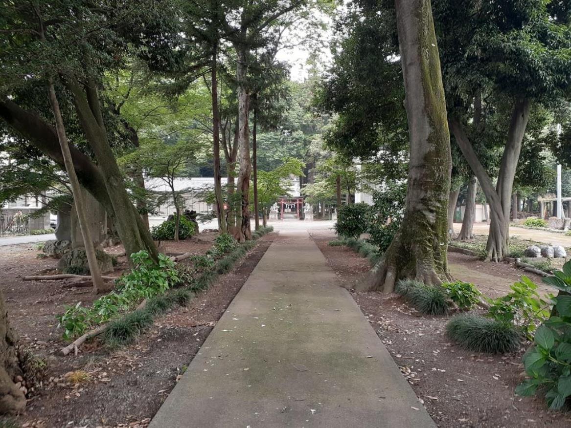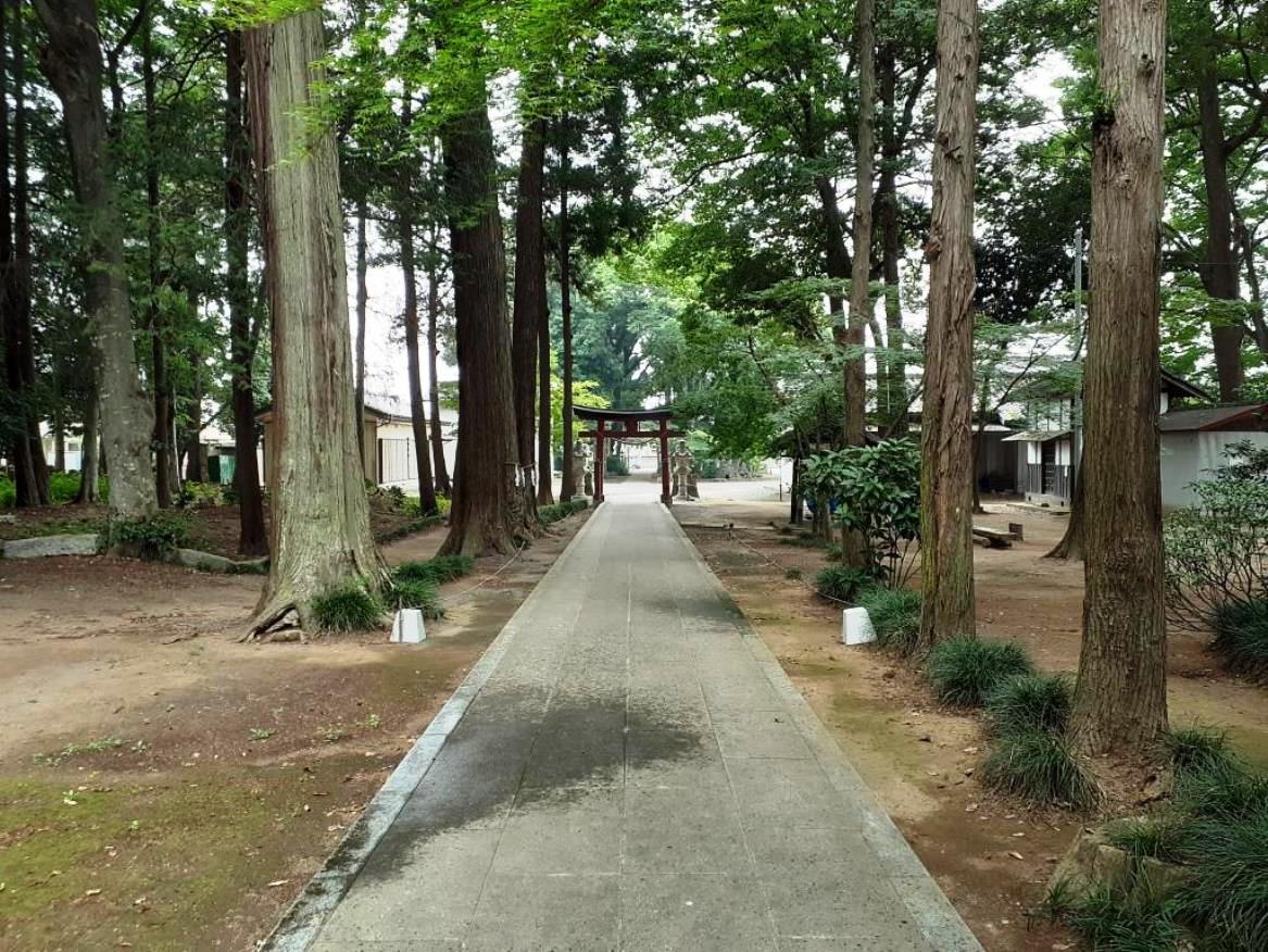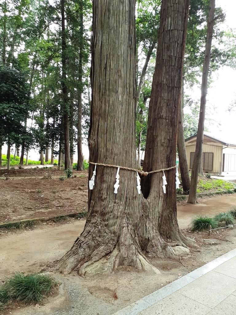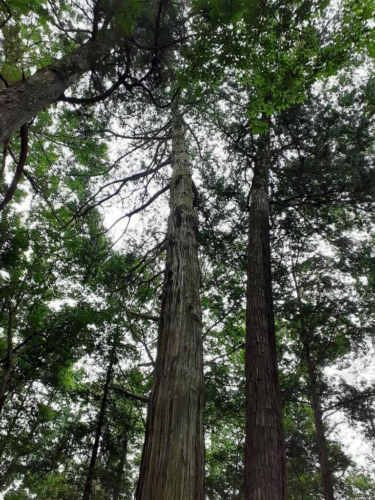 石段が終わり参道を進む途中に聳え立つ杉の御神木