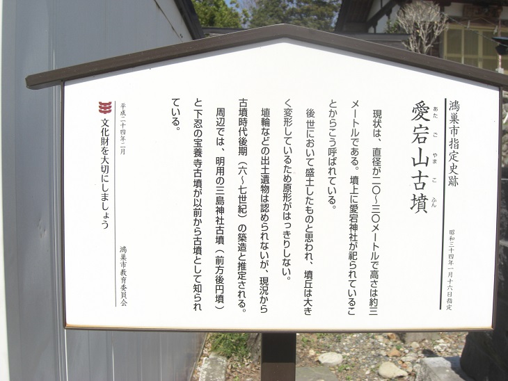 かつてこの地域には沢山の古墳が存在しており、本古墳はその中心的古墳だったと思われます。現在では周辺の古墳は失われ幾つかが残るだけですが、その残された古墳の中でも本古墳は当時の原型をとどめていることで大変貴重なものと考えます。