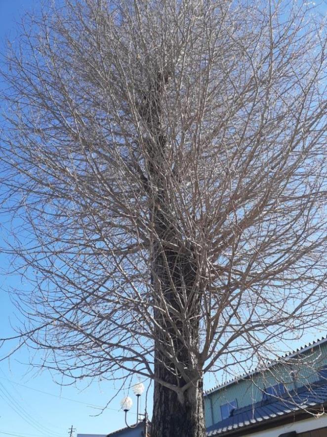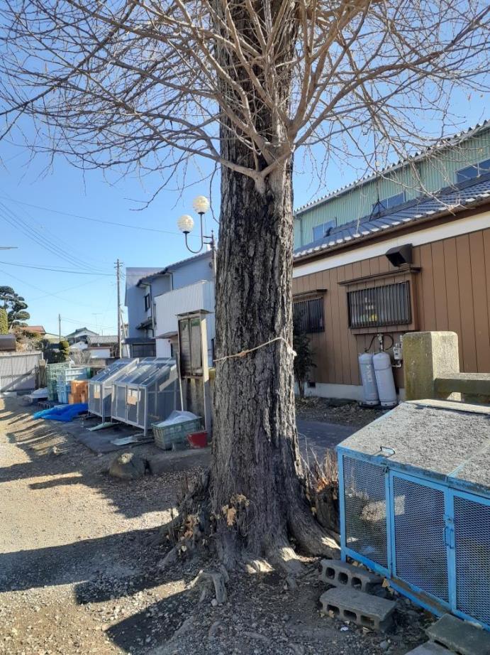 鳥居のすぐ手前で、一際目立つイチョウのご神木(写真左・右)