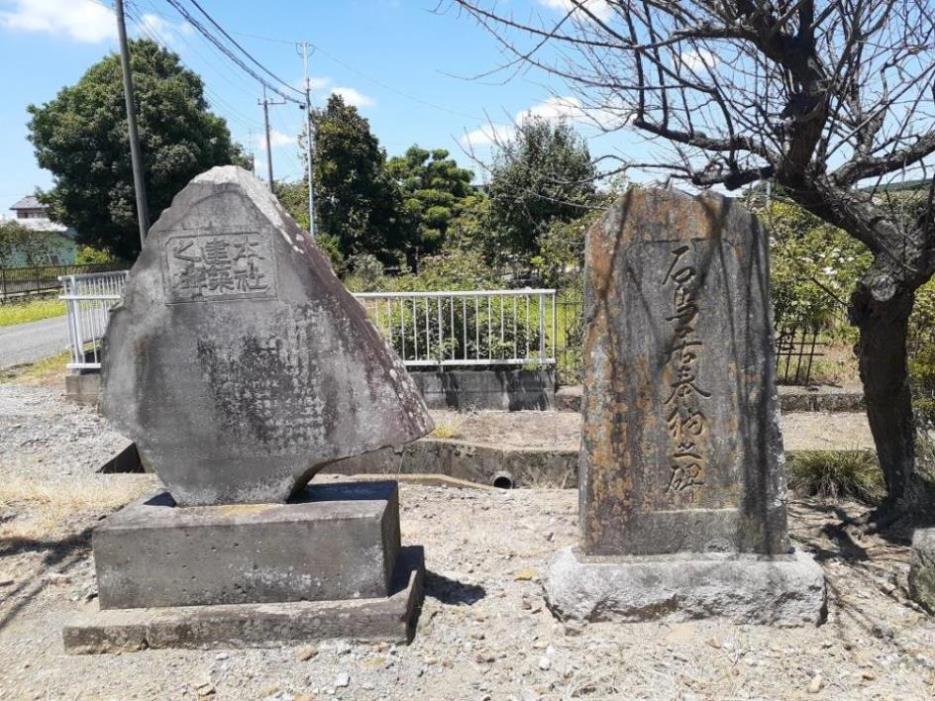駐車スペースの奥にある石碑類 並んで設置されている石碑二基