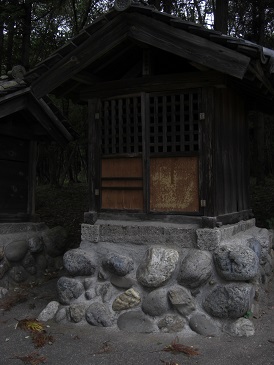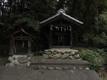社殿右手にあった境内社(写真左側)と大黒天の石碑(同右)