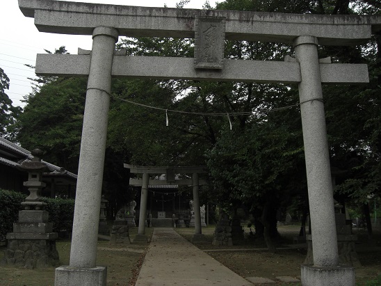 第二は、かって隣村の大塚島に鎮座する鹿島大神社の社領であったと伝える下手計・沖・戸森・内ヶ島・田中(伊勢方の小字)などの村々などには「鹿島社」が祀られている。このことから、当社は往時、この鹿島大神社から分霊を受けたとする説である。