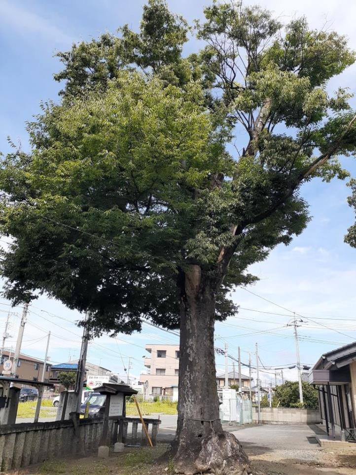 ご神木の近くに「宿根総鎮守 龍宮神社御由緒」の掲示板が設置されている。