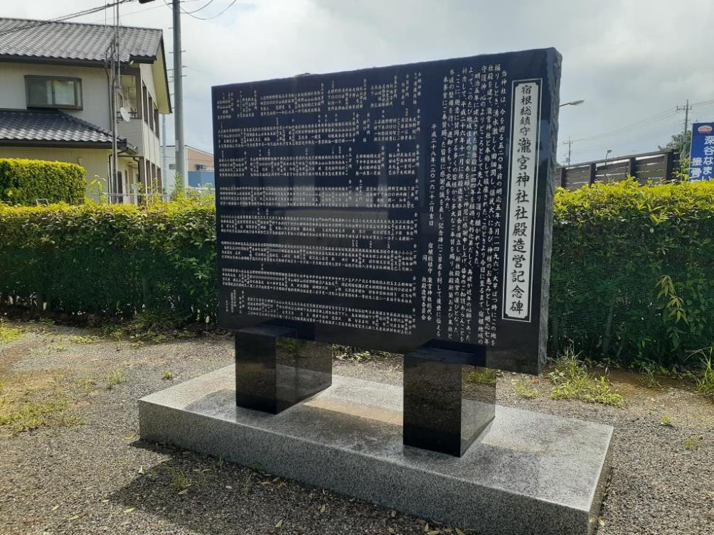 参道右側に設置されている「宿根総鎮守 瀧宮神社社殿造営記念碑」
