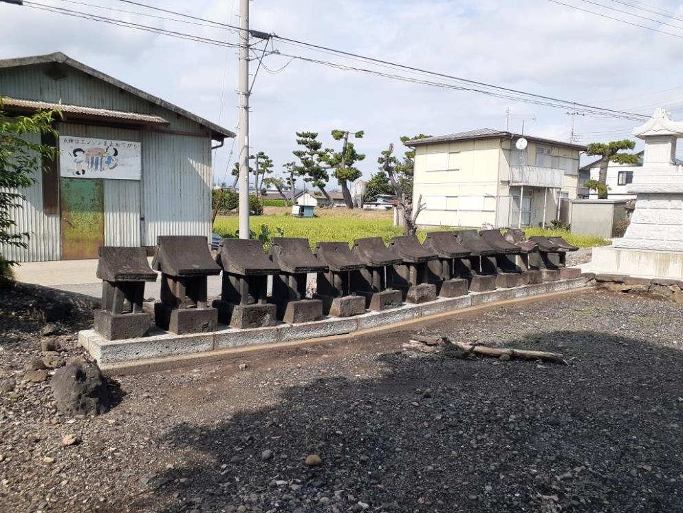 社の北側道路沿いにある二十二夜塔等の石碑