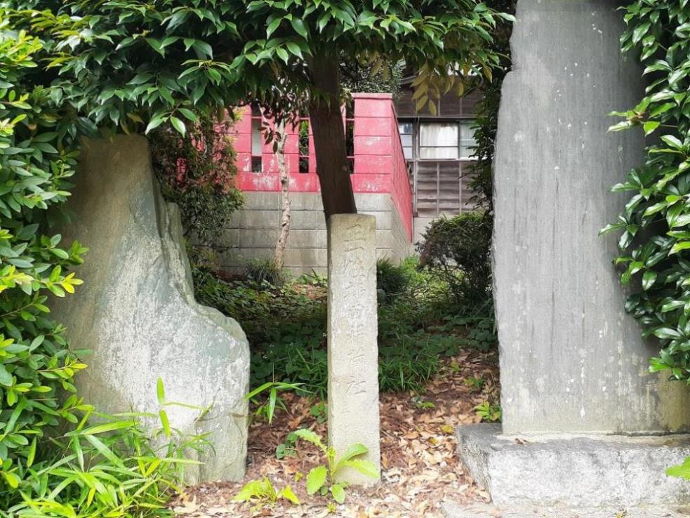 鳥居のすぐ右側で、社号標柱の両側には石室の天井石