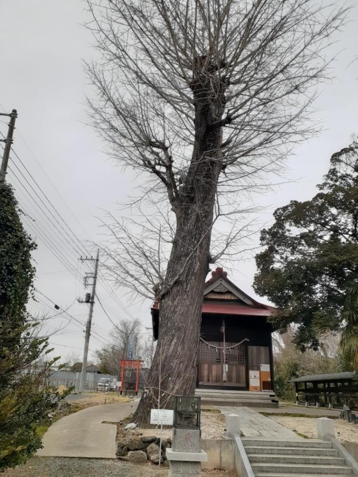 拝殿の手前に聳え立つイチョウの御神木