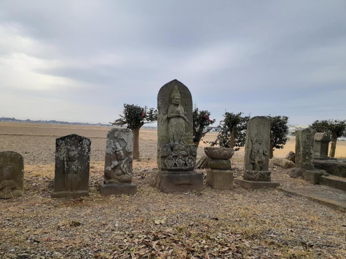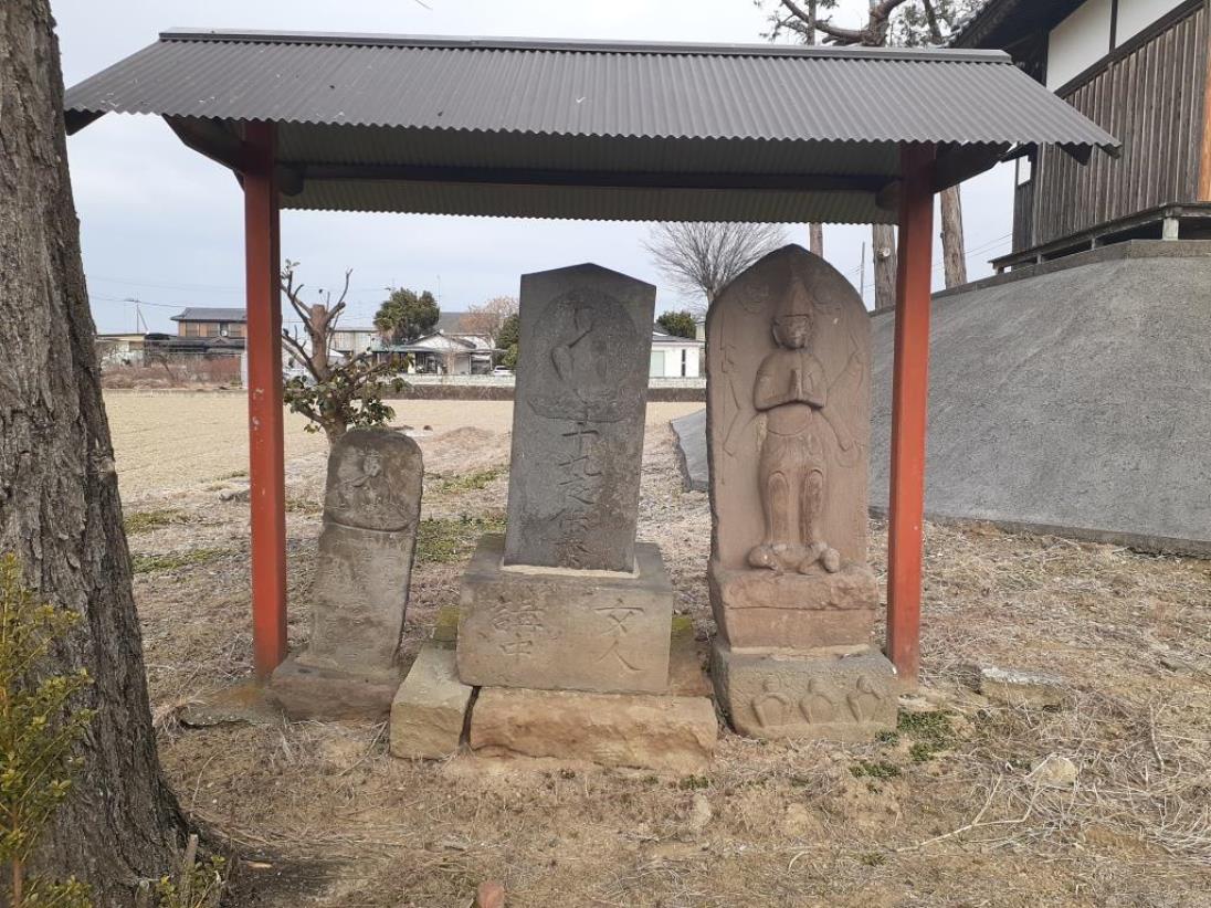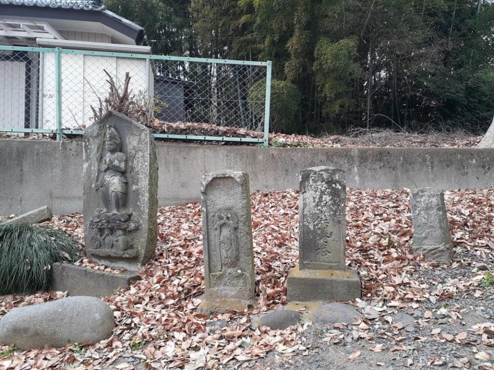 石仏群の右隣には「〇〇太神宮」の石碑が祀られ、その脇に葉「中柏戸村」と刻まれている。