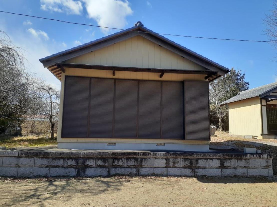 参道正面から見た境内の様子。参道左側に砂山集会所がある。
