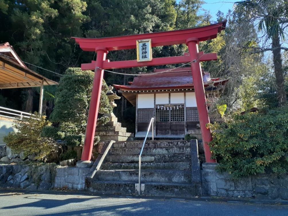 道路沿いに鎮座する伊古田五所神社