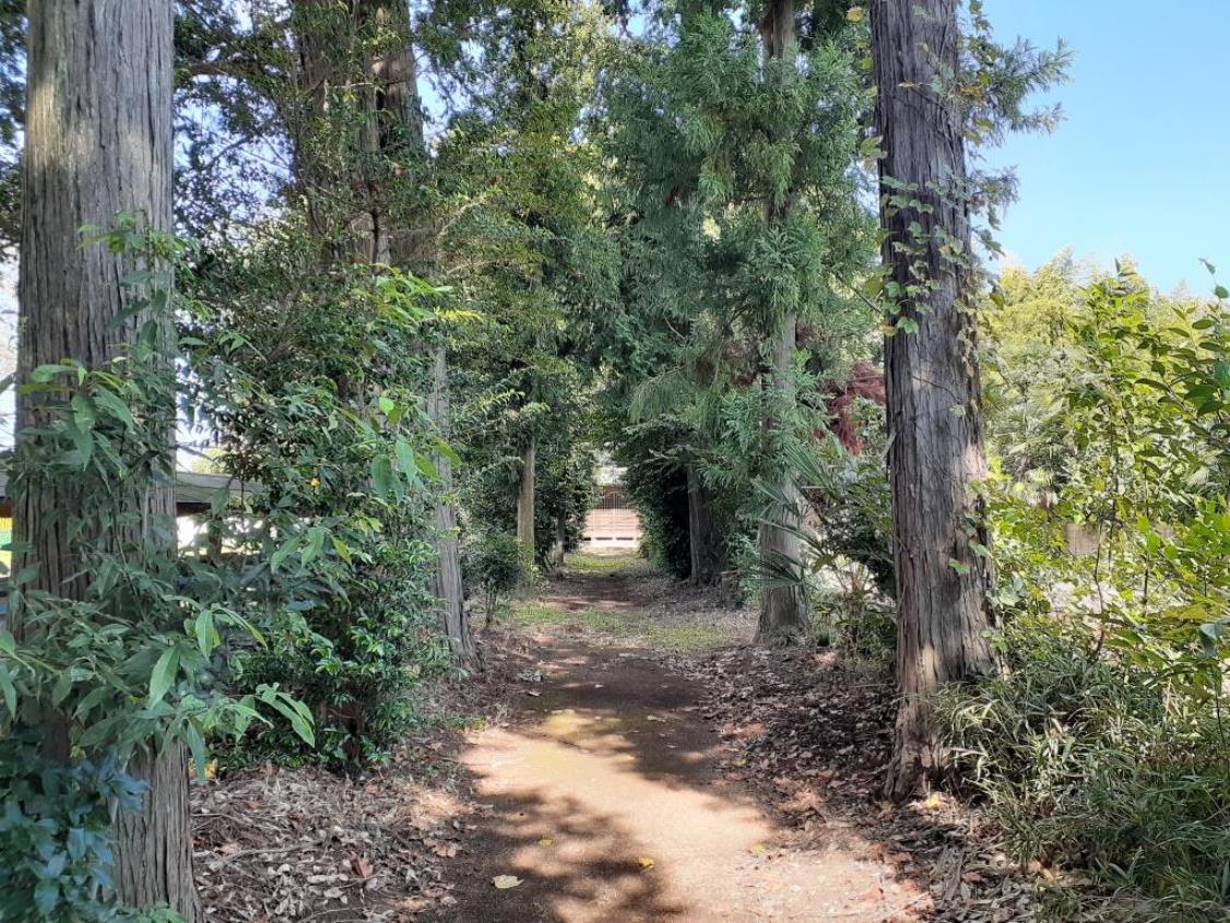 公園内から脚折雷電社を望む。