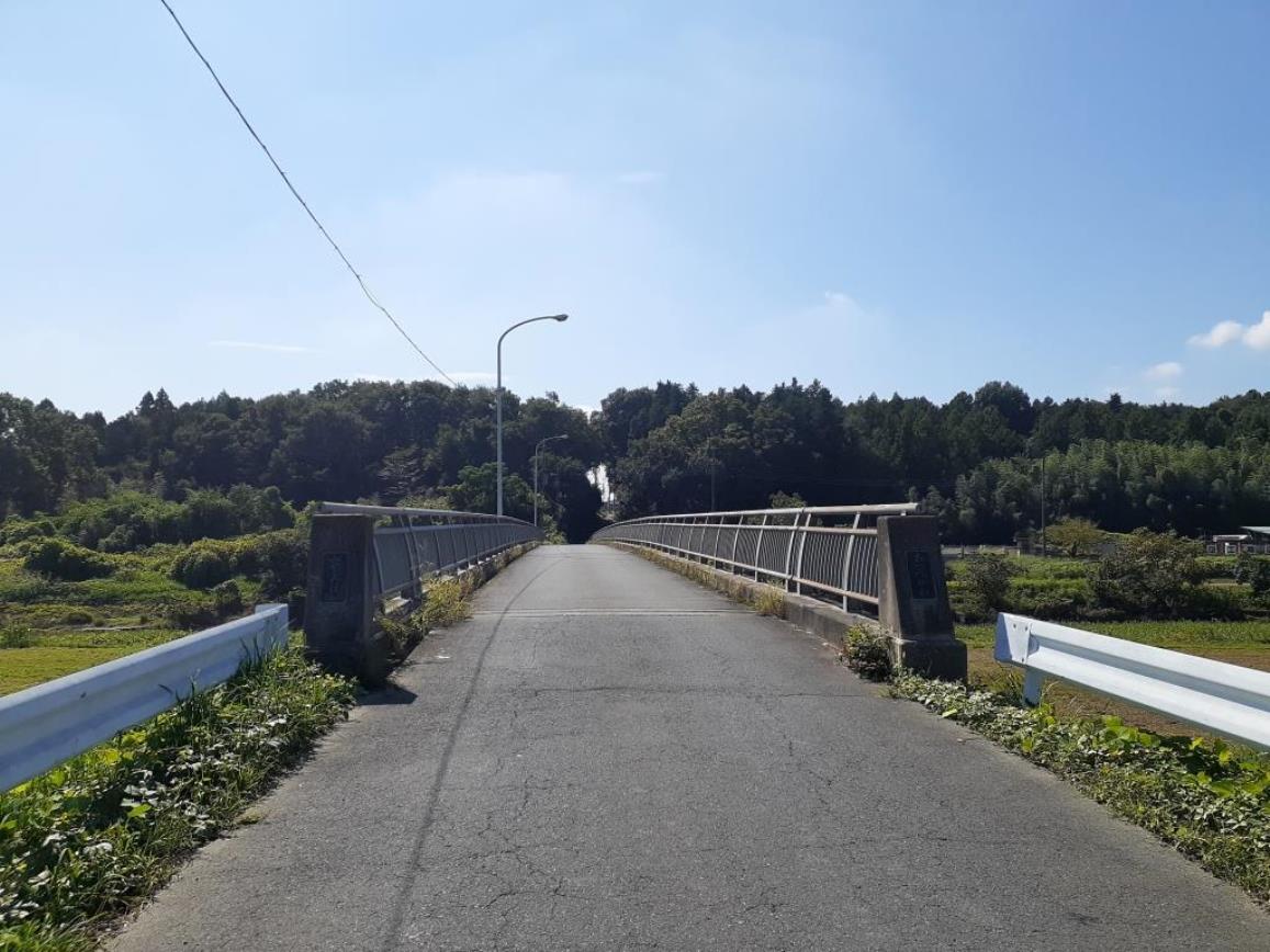 ところで、越辺川右岸の台地上に位置している川角八幡神社に沿って南北に走る道路を北上すると、下り坂となり、その先には越辺川が流れ、その川に架かる「宮下橋」を渡る。越辺川の右岸一帯は豊かな山林となっているのに対し、左岸は景色が一変し、なだらかな平原となる。「西戸グラウンド」という運動場もあり、学生さんたちが暑い天候の中、汗を流しながらスポーツを楽しんでいた。