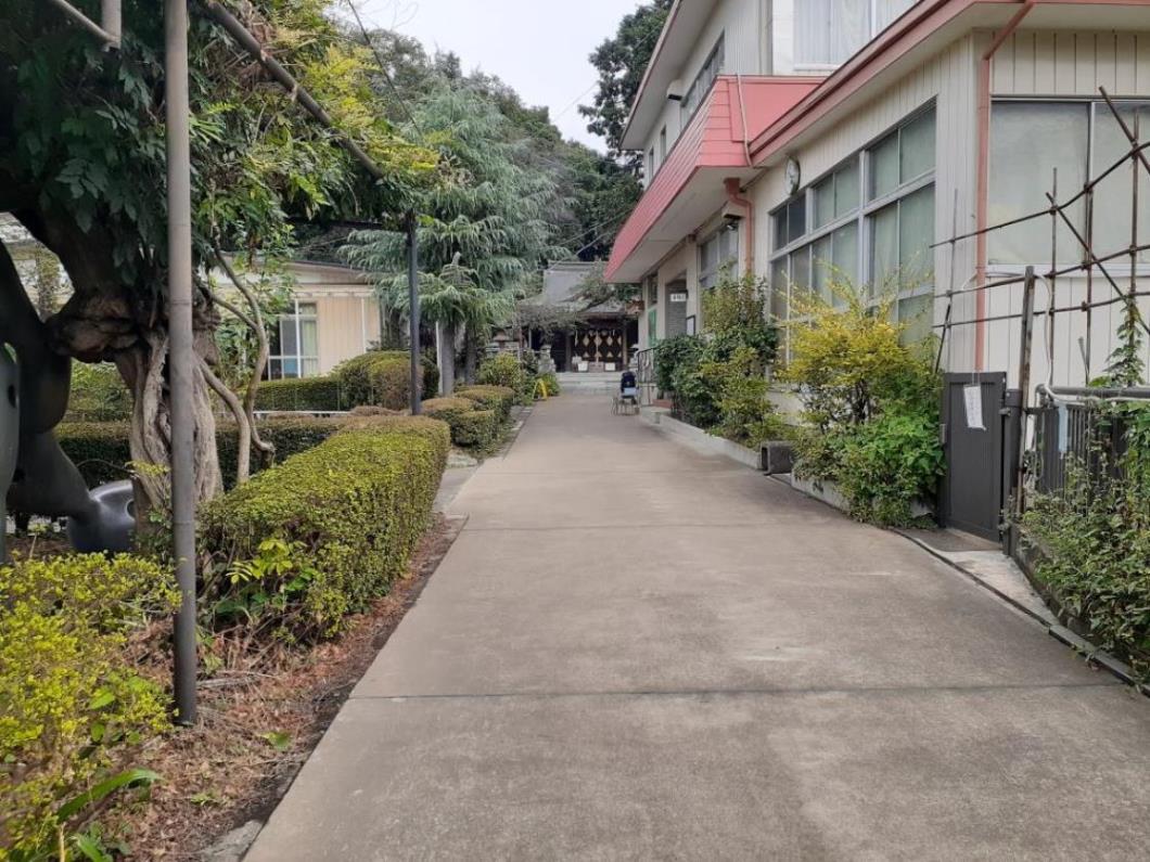 鳥居を過ぎると併設された幼稚園の先に社殿が見える。