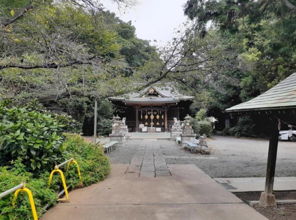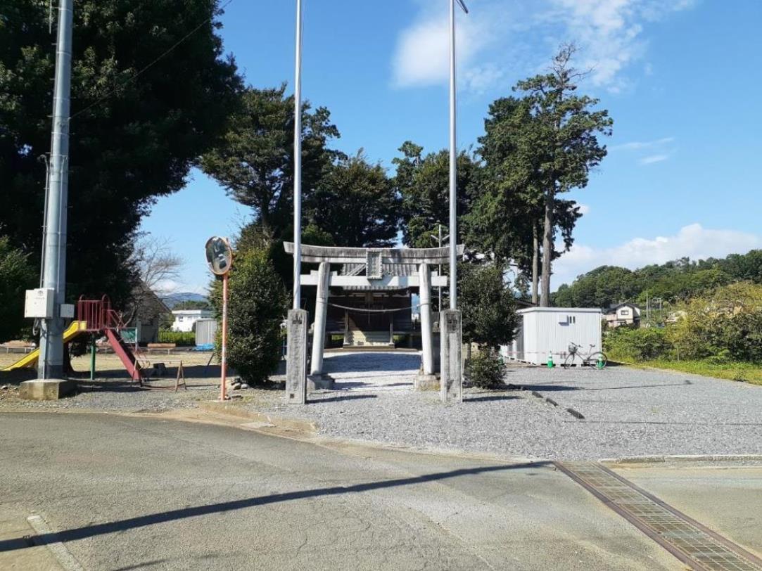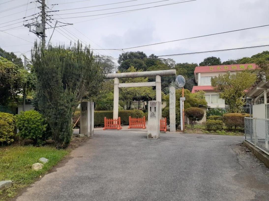 境内にはアカマツ等の豊かな社叢林に覆われているが、周囲は住宅街である。