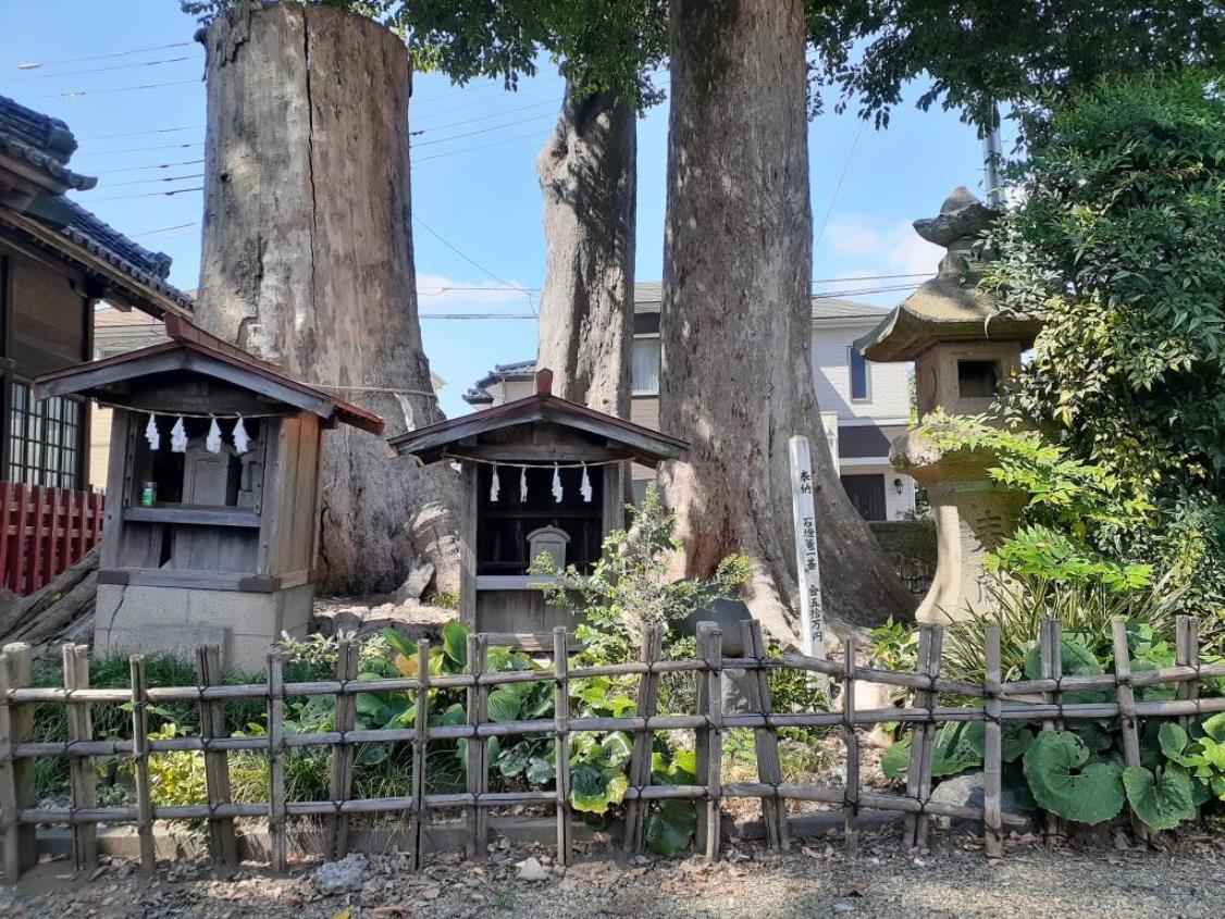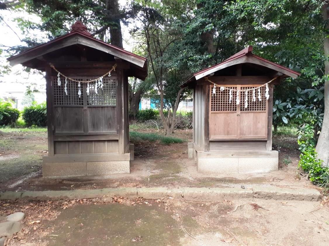 拝殿に対して左側に祀られている境内社・愛宕社 向かって右側には境内社・稲荷社が2基鎮座