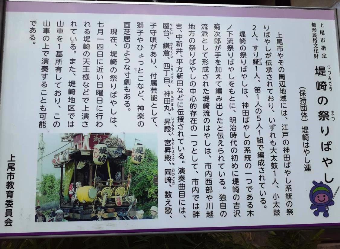 ところで、この高倉地域には、「高倉の獅子舞」という江戸時代から続く伝統行事が現在でも続いている。鶴ヶ島市内唯一の獅子舞であり、高倉日枝神社で毎年11月の例祭にて豊作感謝・疫病退散祈願のため獅子舞が奉納されている。