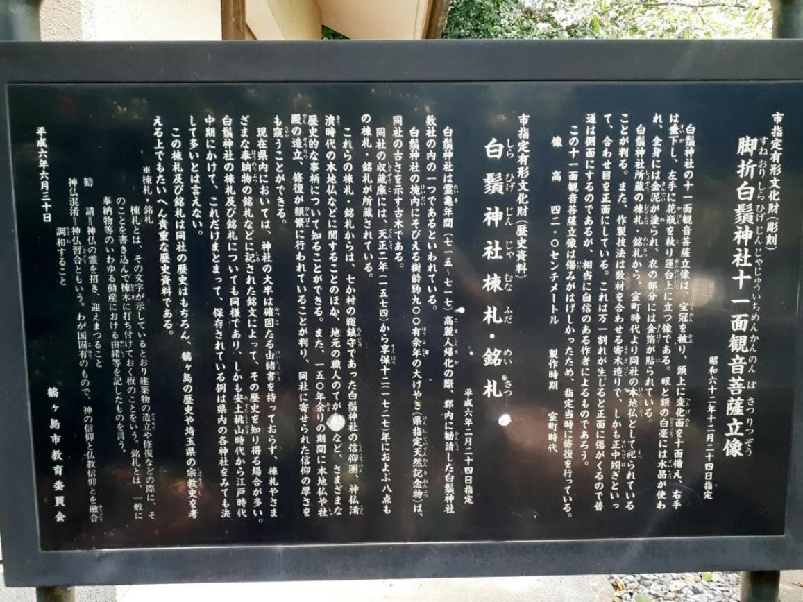 脚折白鬚神社十一面觀音菩薩立像 昭和六十二年十二月二十四日指定