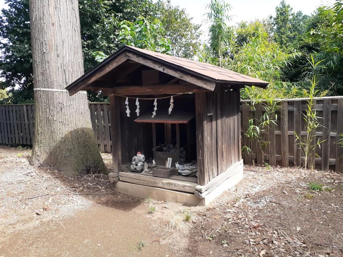 をした盛り土部があり、その上には石碑と石祠が祀っている。詳細は不明。