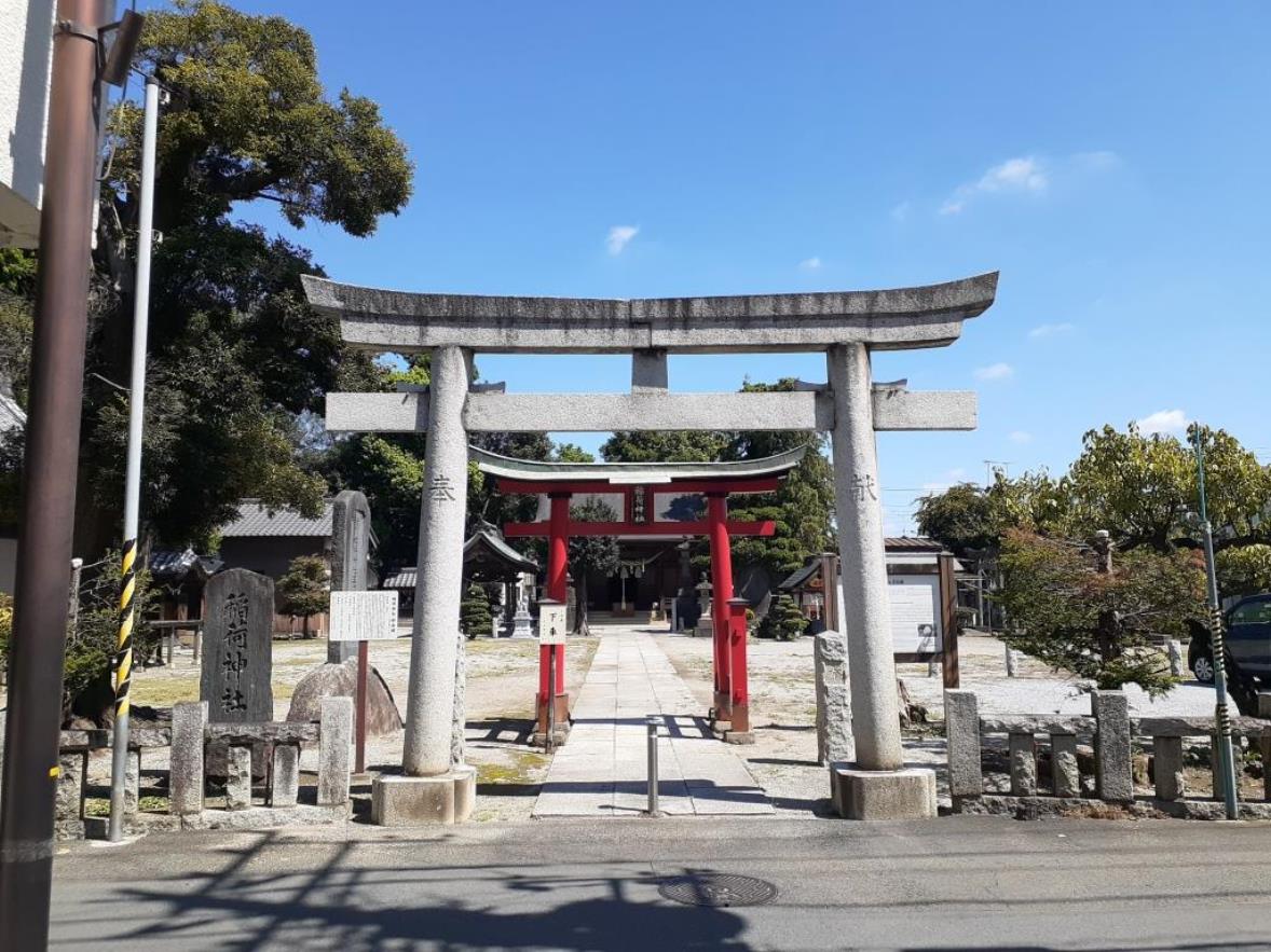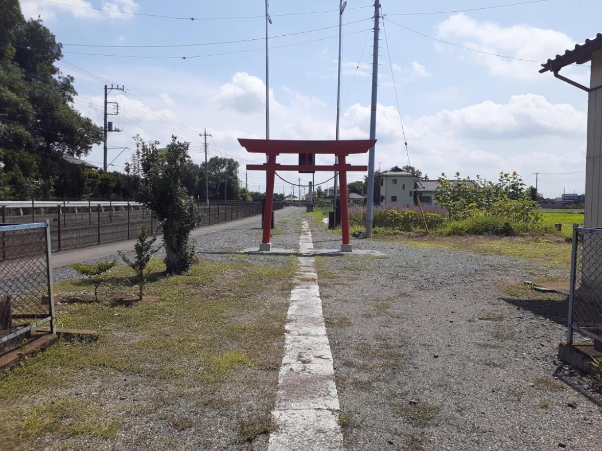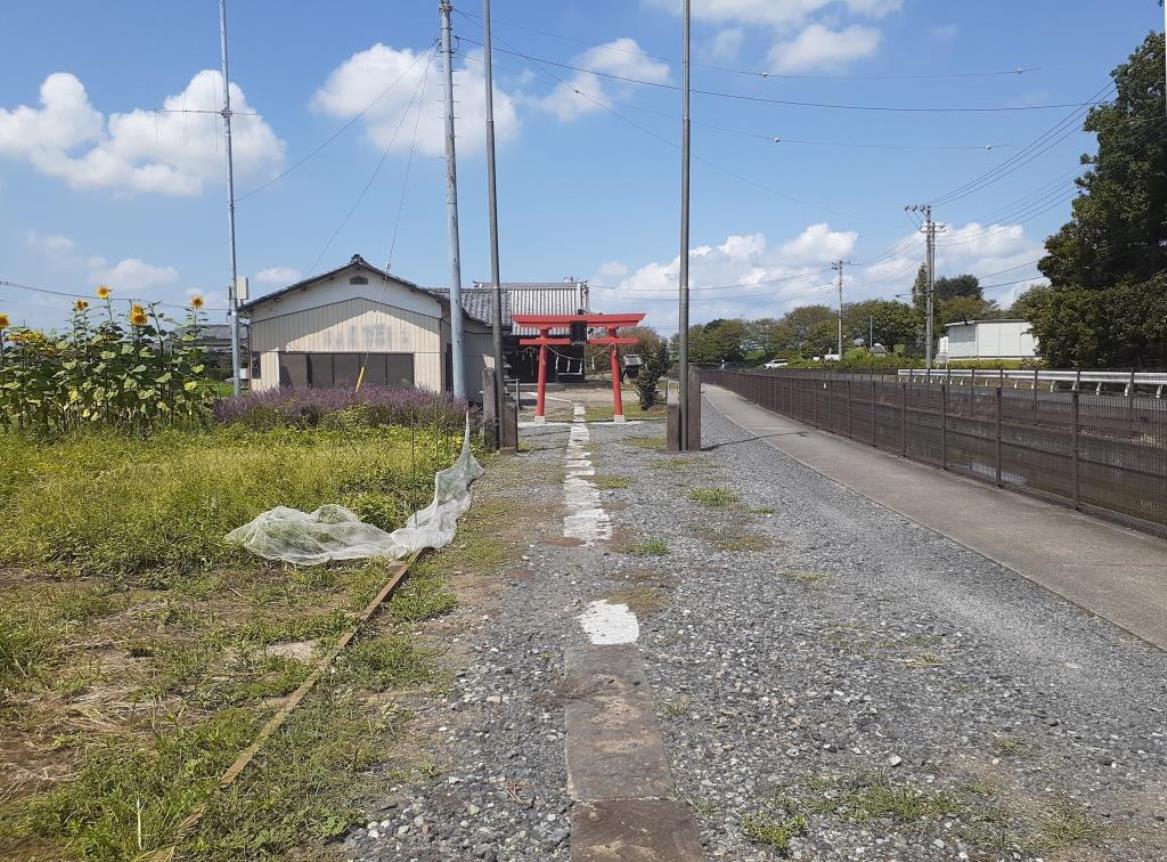 南北に流れる用水路に沿って社は鎮座し、社号標柱(写真左)から