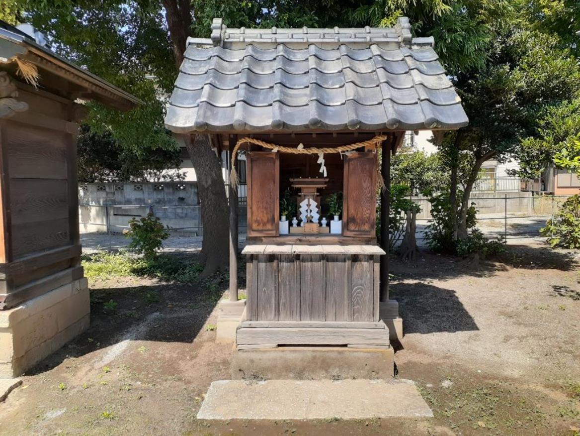 拝殿の回りに祀られている末社三基…栗島・諏訪・熊野社。但しいずれかは不詳との事