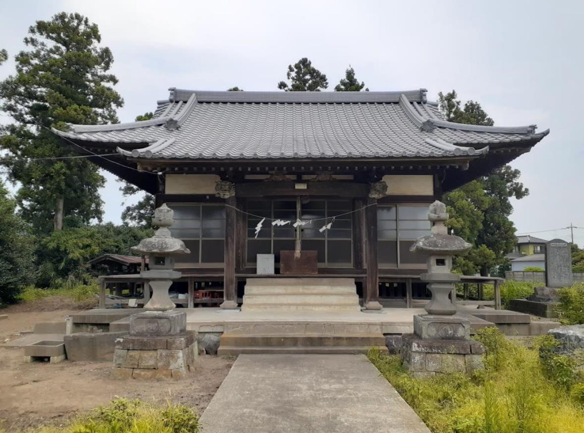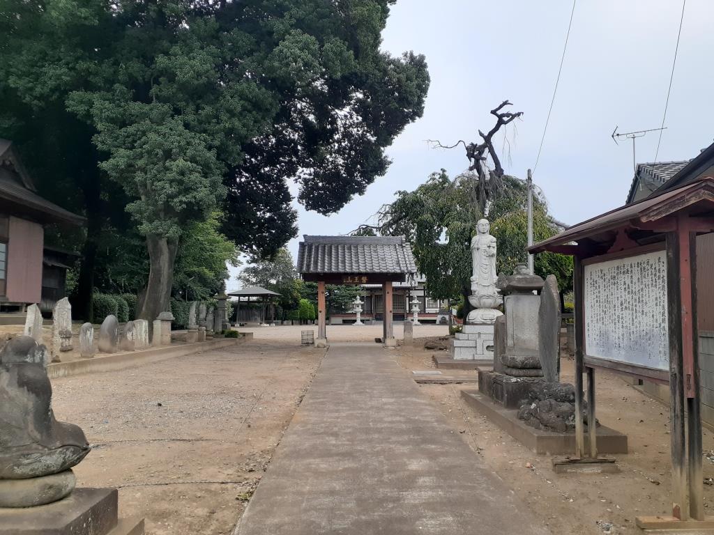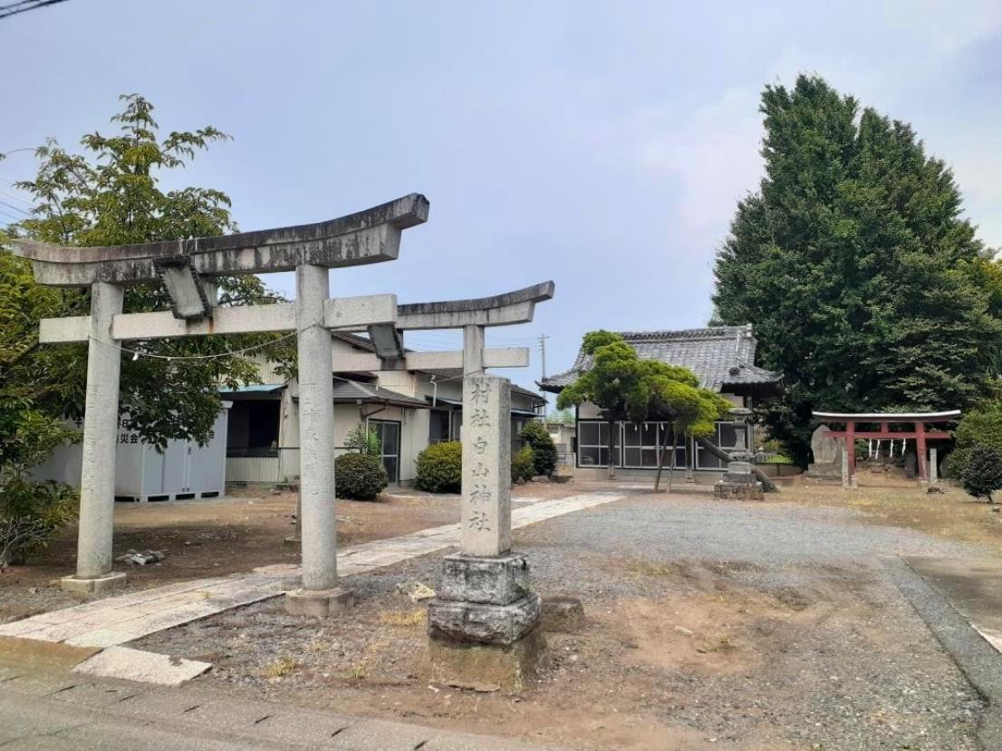 行田市の「利根大堰」を北上し、群馬県に入り「上中森」交差点を直進する。1㎞程先には「ジョイフル本田千代田店」の大型ショッピングモールがあり、そのショッピングモールの真ん中付近にある丁字路を左折し、道なりに真っ直ぐ進む。昔からある長閑な住宅街のようで、どことなく筆者の幼少期を思い出すセンチメンタルな感傷に浸りながらも、周囲の安全を確認し運転をしていると、進行方向右手に萱野白山神社の鳥居が見えてくる。ナビを利用しているが、移動するにも意外と簡単に到着ができ、ブログにも説明しやすい場所である。