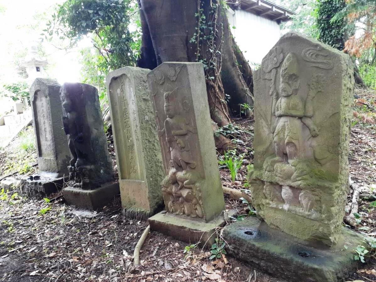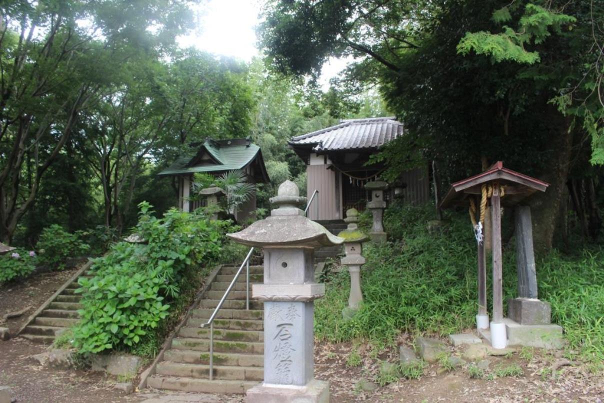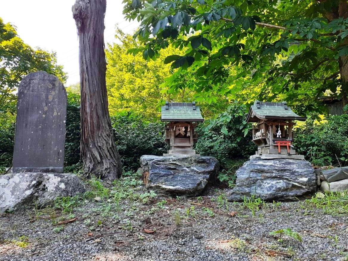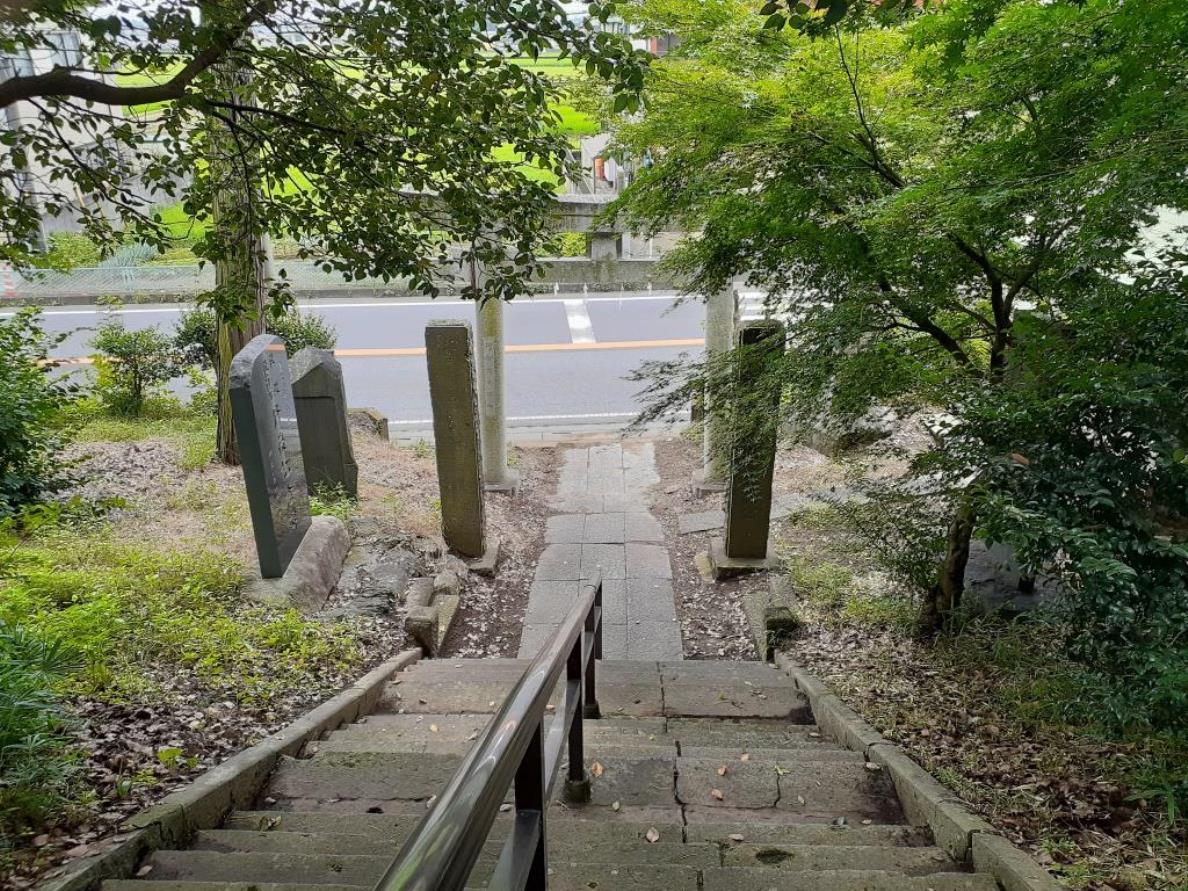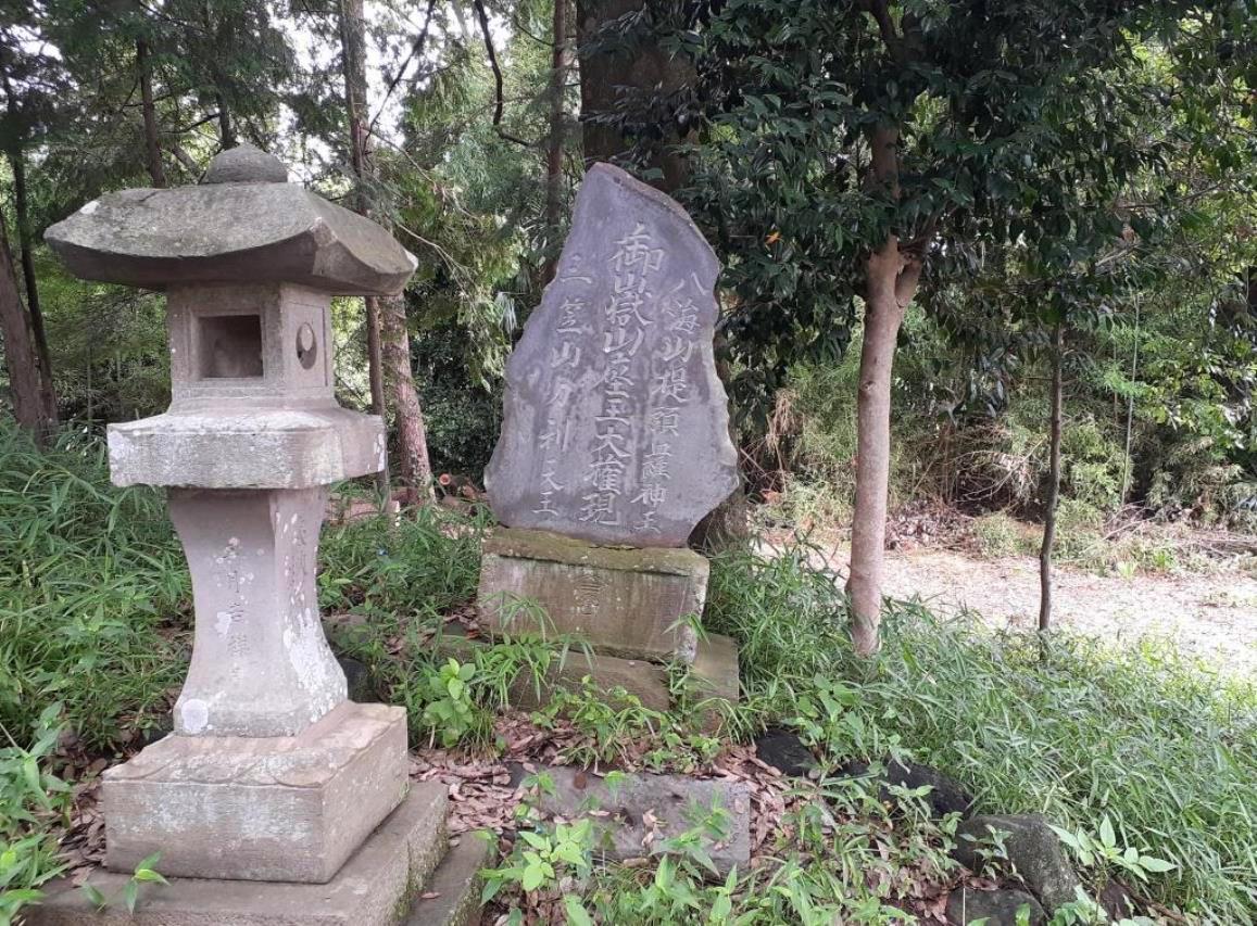 石段下に祀られている白山大神の石碑 石段の中段附近にある御嶽山大権現の石碑