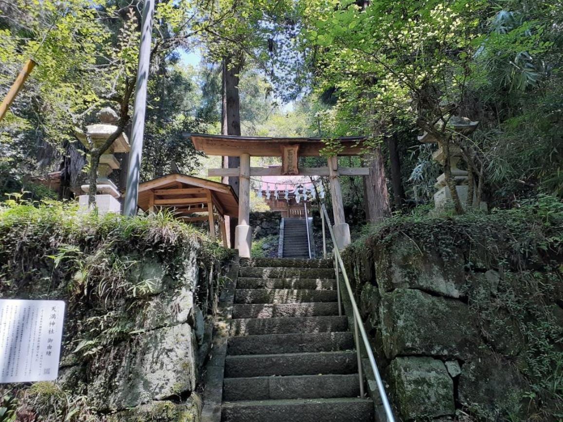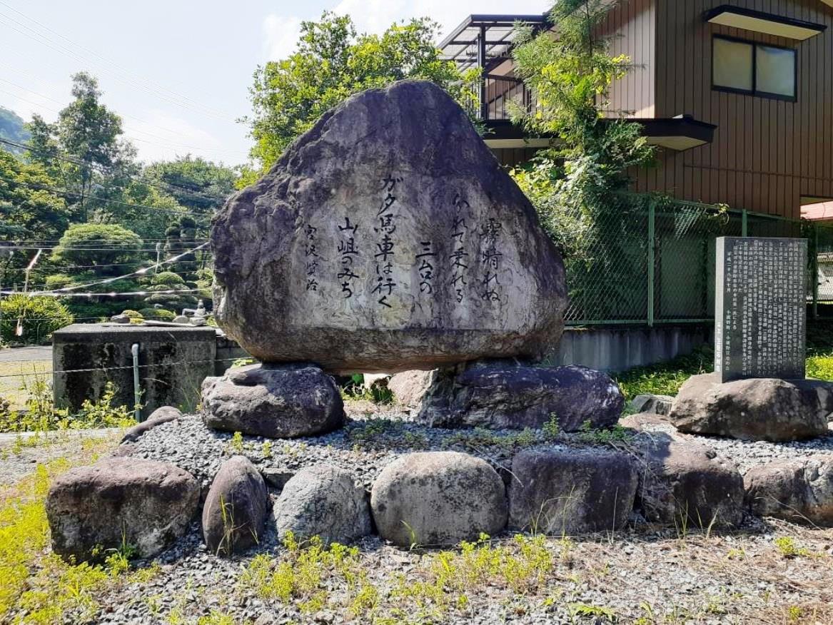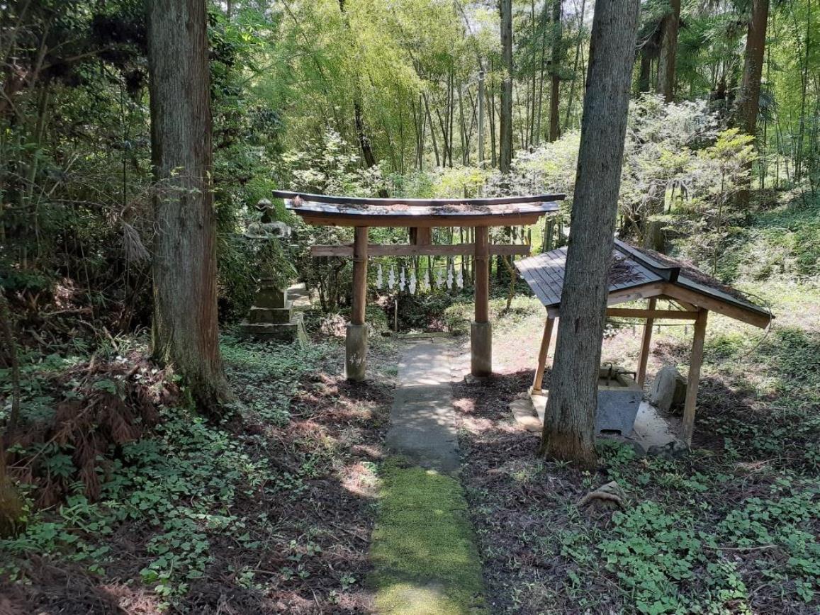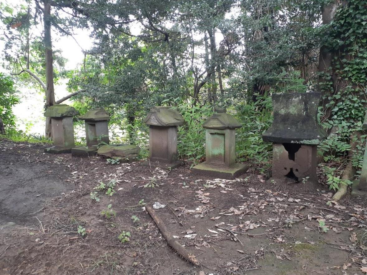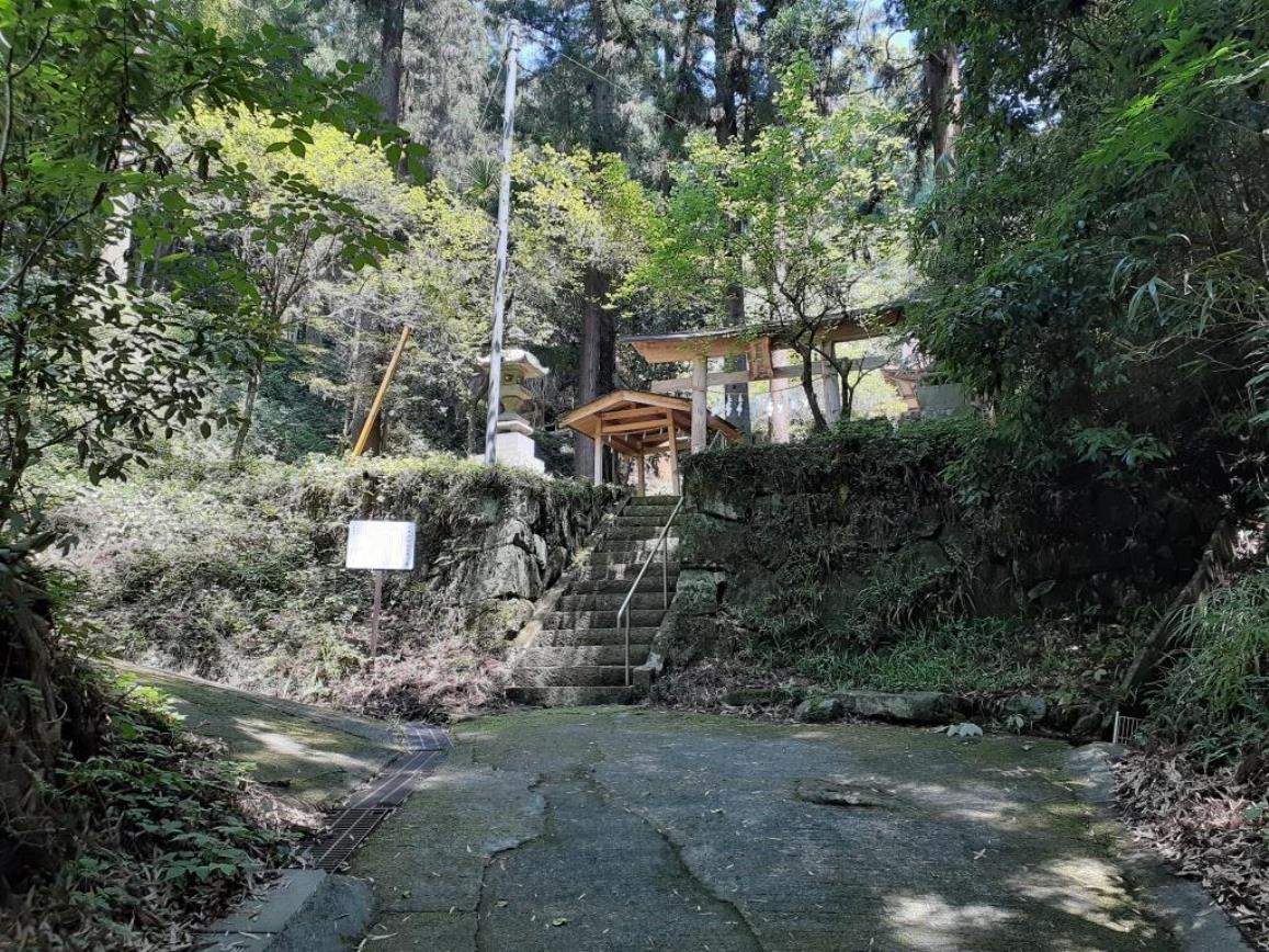 石段下に祀られている白山大神の石碑 石段の中段附近にある御嶽山大権現の石碑