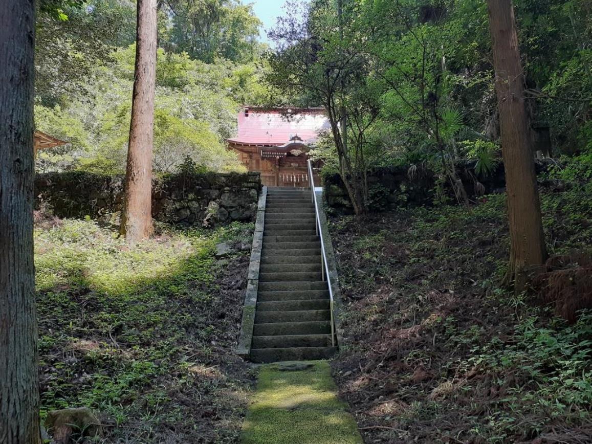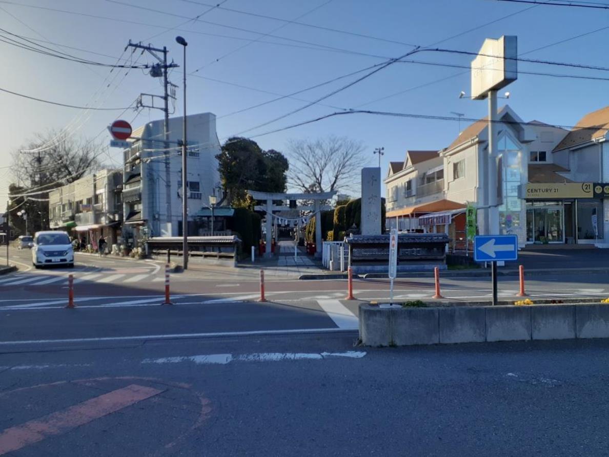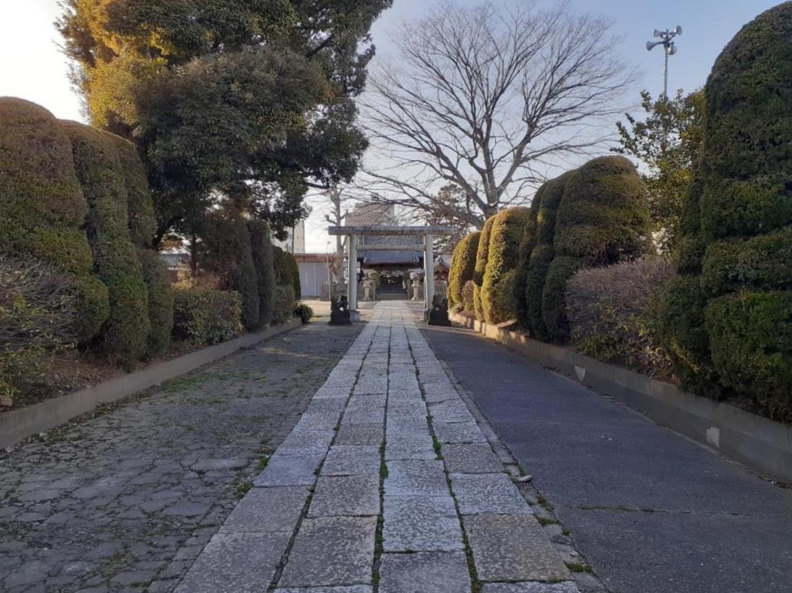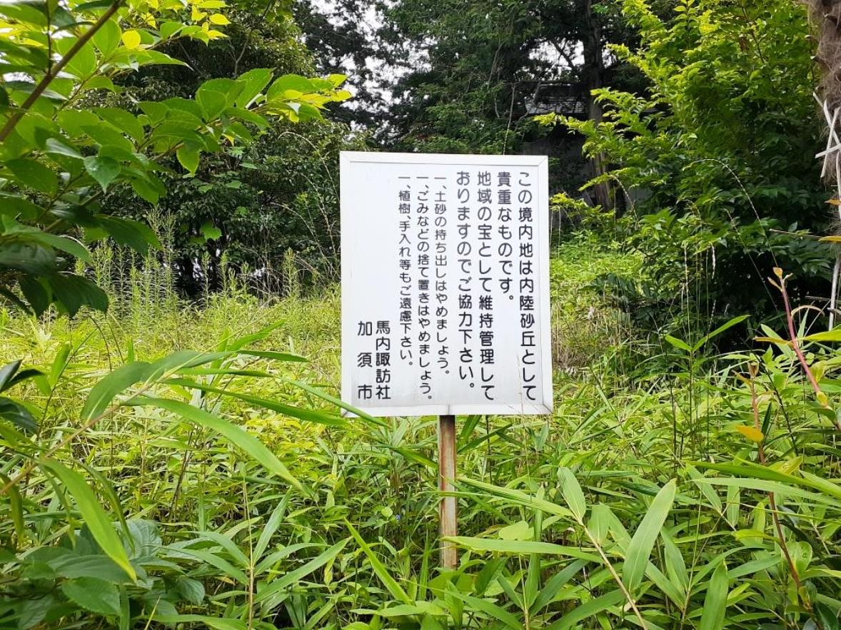 境内は広く、参道は長い。社は、その会ノ川右岸の自然堤防上に形成された「志多見砂丘」上に鎮座している。国道が近くに通っているにも関わらず、境内一帯は至って静かである。また周囲を見渡すと、境内北側から西側にかけて社を囲むように社叢林が覆う、その佇まいは否が応でも古き歴史を感じてしまう。