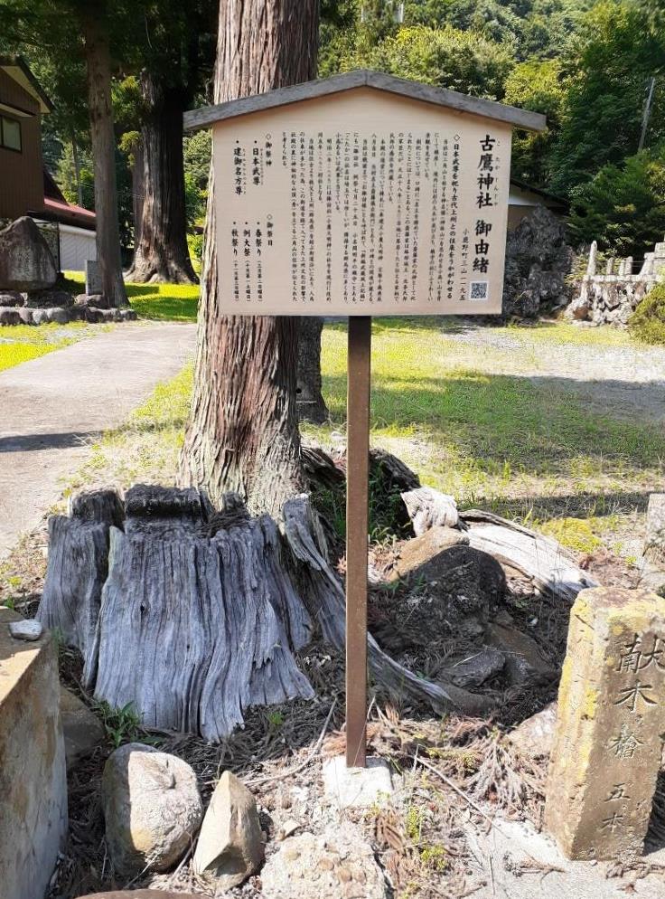 鳥居の右側に設置されている案内板 案内板の右隣にある「日枝神廟復地之記」