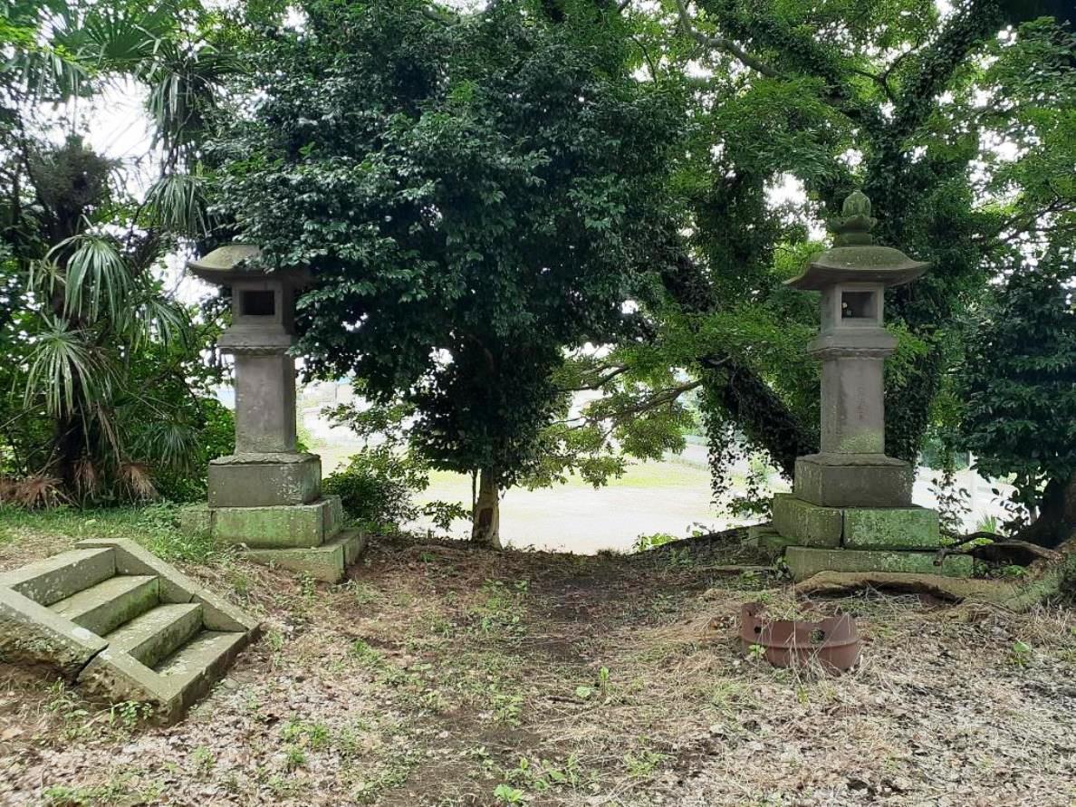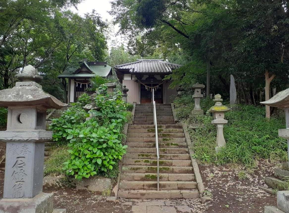 社殿は会ノ川右岸の自然堤防上に形成された志多見砂丘上に鎮座