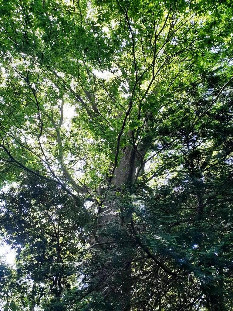 一の鳥居からご神木を望む。