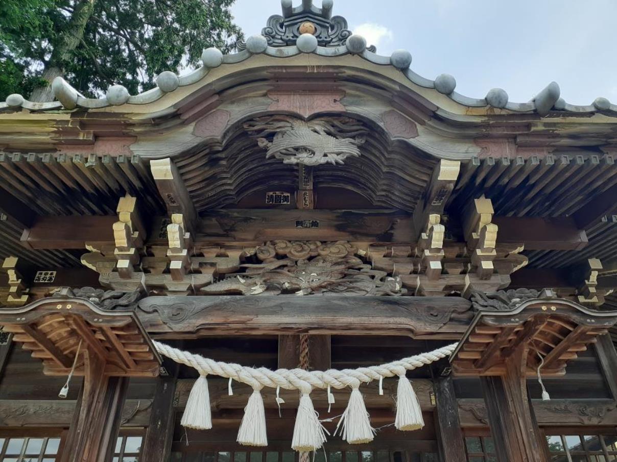 拝殿に掲げてある扁額 拝殿向拝部・木鼻部等の見事な彫刻