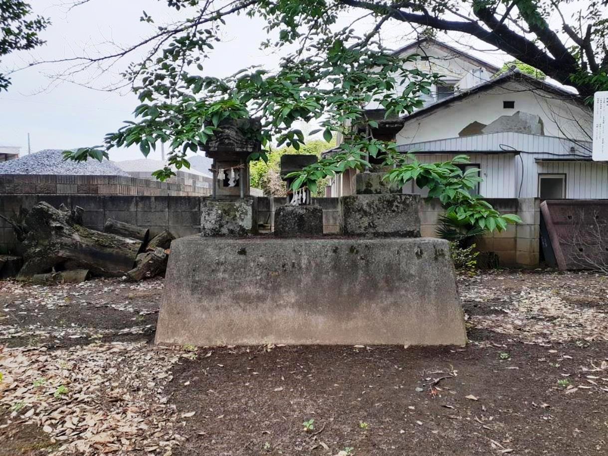 社殿左側に祀られている石祠三基 社殿右側にも境内社。