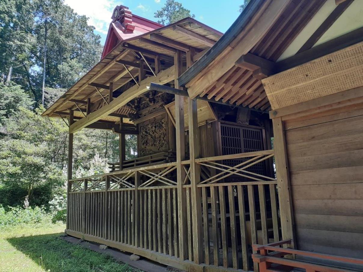 この地は越辺川源流域に位置し、川底が透けて見える程綺麗な越辺川が社の対岸にあり、一とき目を閉じると、川のせせらぎが耳奥に心地よく響く。周囲は山奥独特の深い森林が広がり、深呼吸をすると、体一杯に綺麗な空気が体内の余計な異物等を排除してくれるような心地よい気持ちになる。