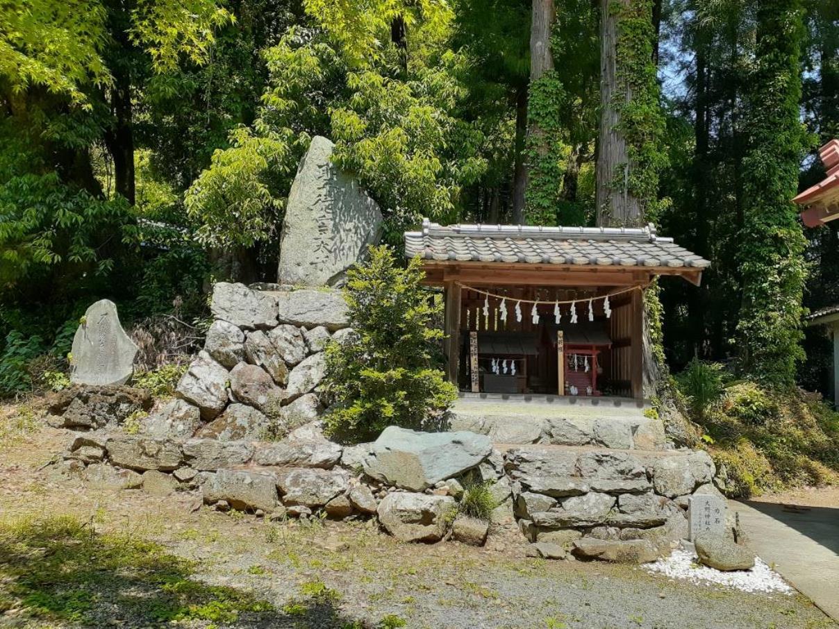 鳥居を過ぎてすぐ右手に設置されている 記念碑の先で並びに祀られている境内社