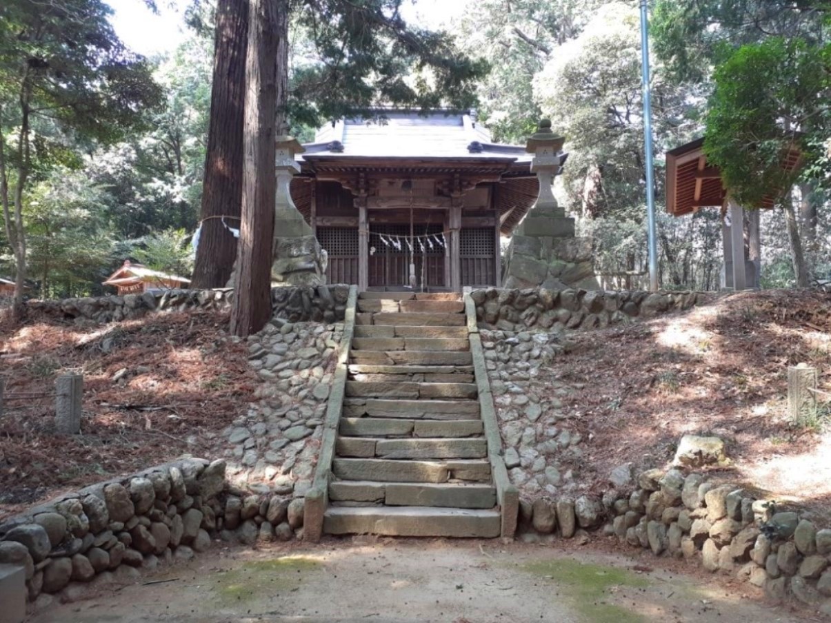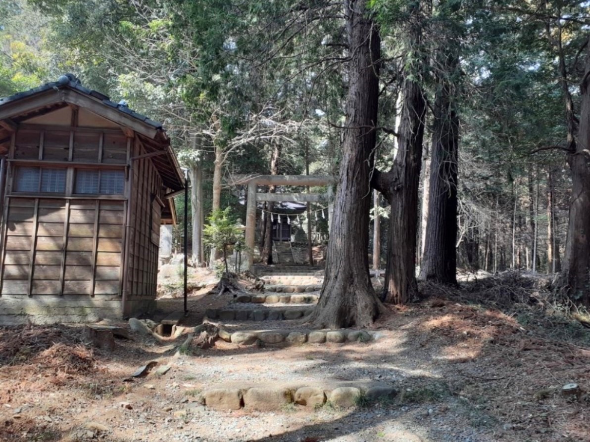 社は槻川の左岸段丘上の狭い平坦地を望む山麓に鎮座している。