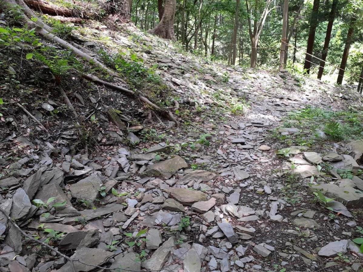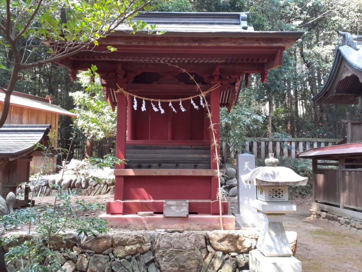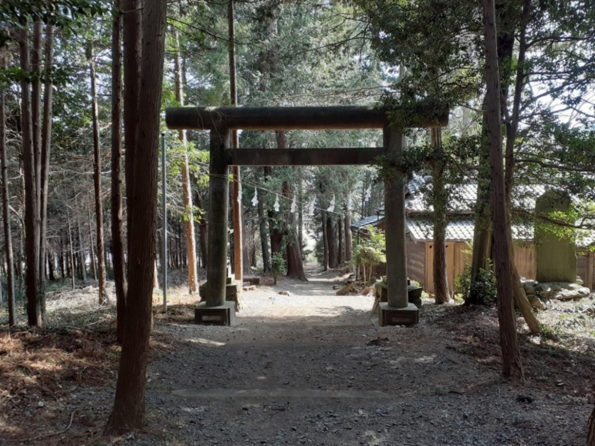 加えて社の鎮座地の小字は「蛇跡」。何と読むかも皆目見当もつかないが、地形を鑑みるに、槻川は下里地域から流れが南西方向に変わり、同地域南部でまた流れを東方向に大きく変化して、嵐山渓谷方向に蛇行しながら流入している。