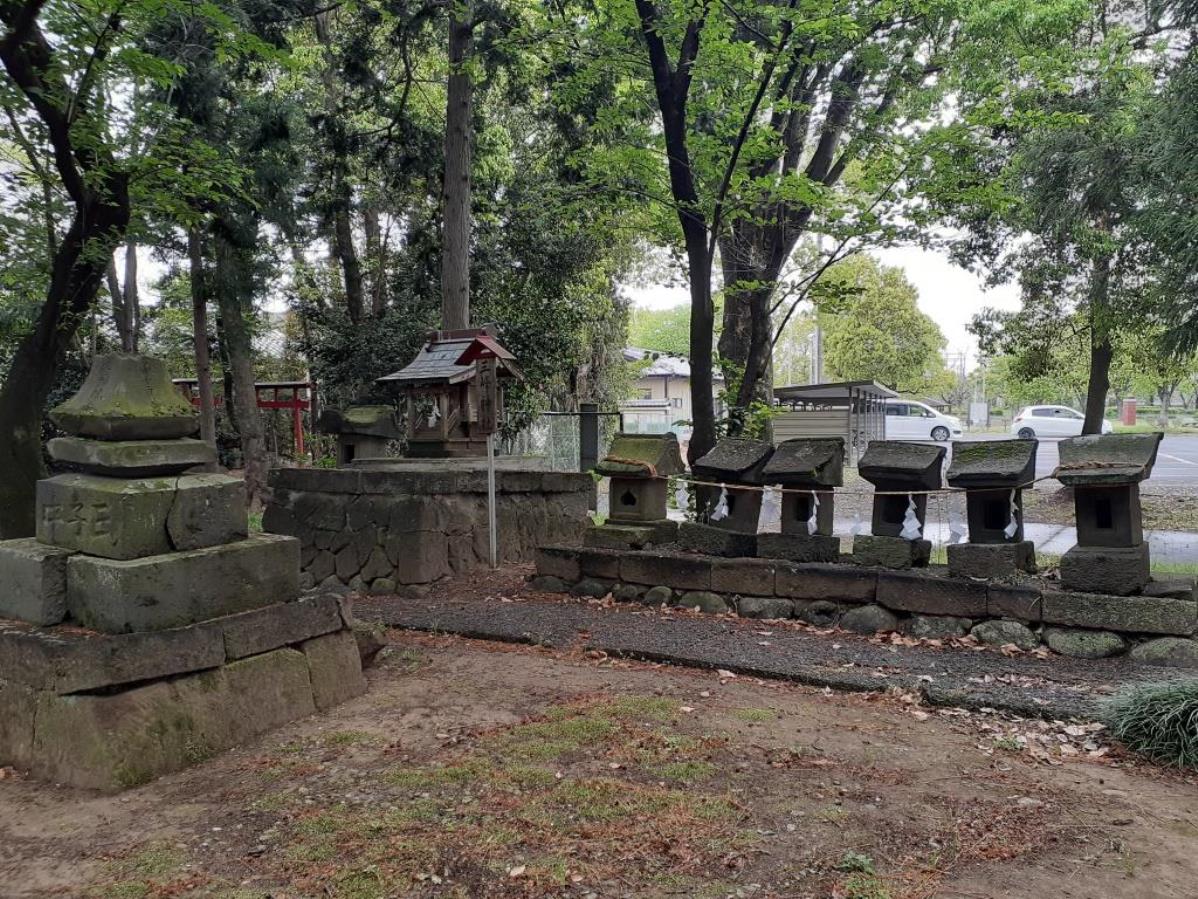 拝殿左側には石祠や庚申塔・道祖神 道祖神等の右並びにある境内石祠群