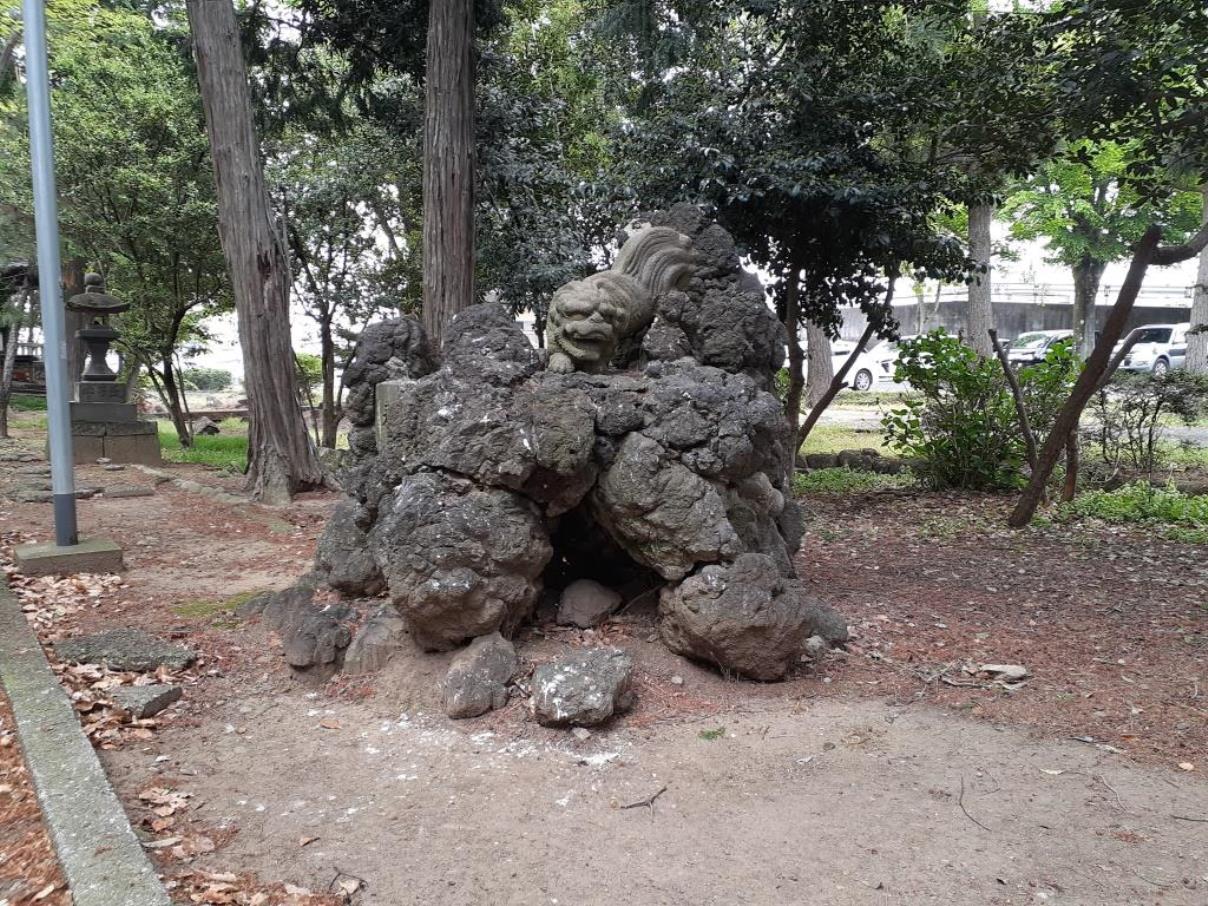 ご神木の根本付近には石祠・社日神が祀られている。