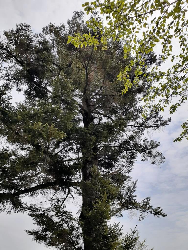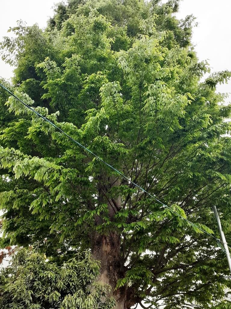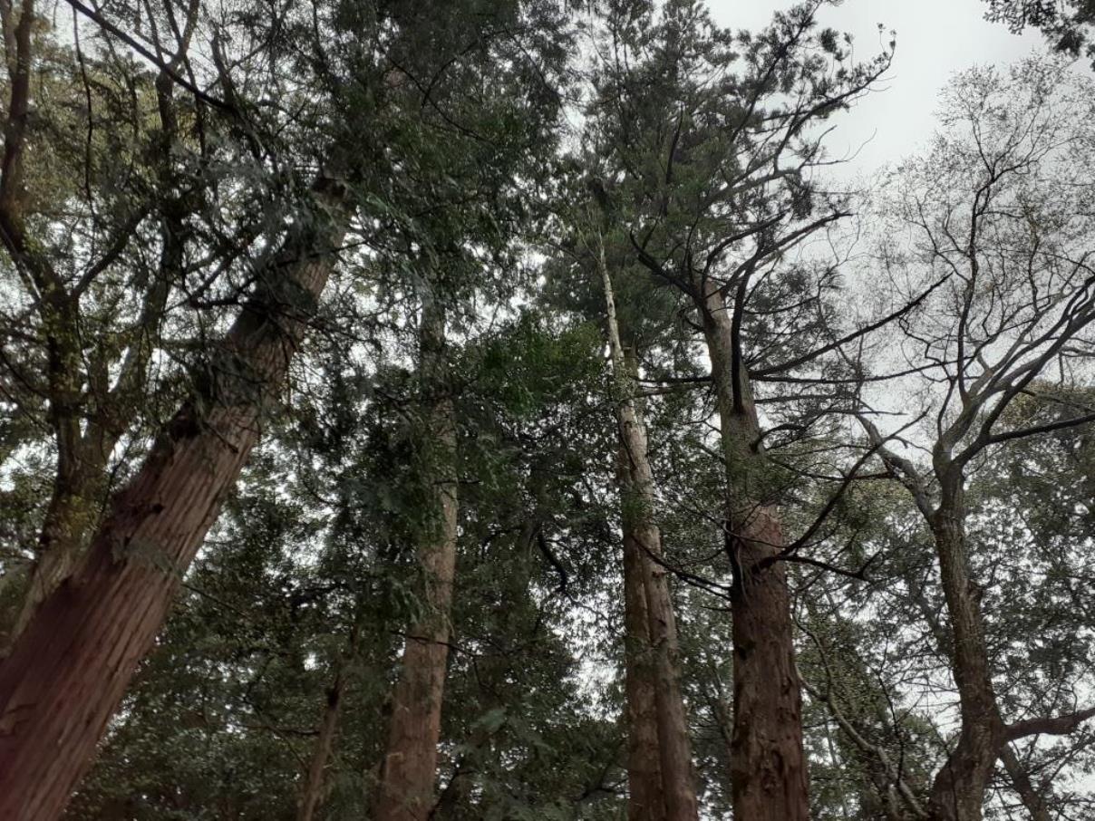 境内の片隅に、孤高の如き屹立する鳩山町景観樹木である「モミ」の巨木
