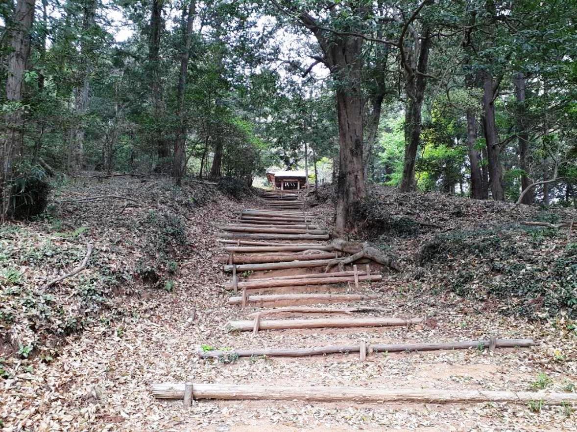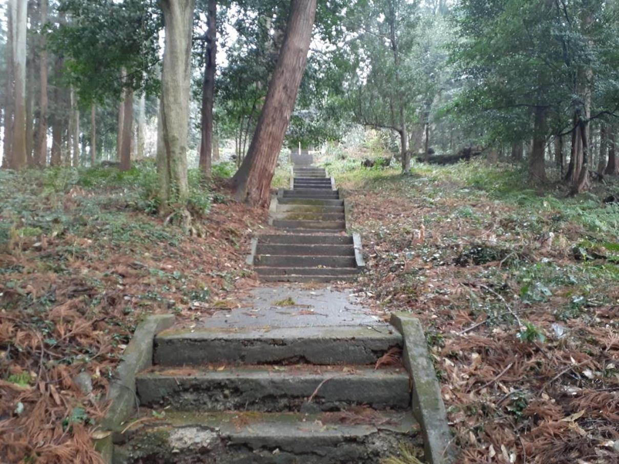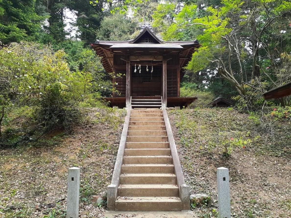 石段上に見える拝殿