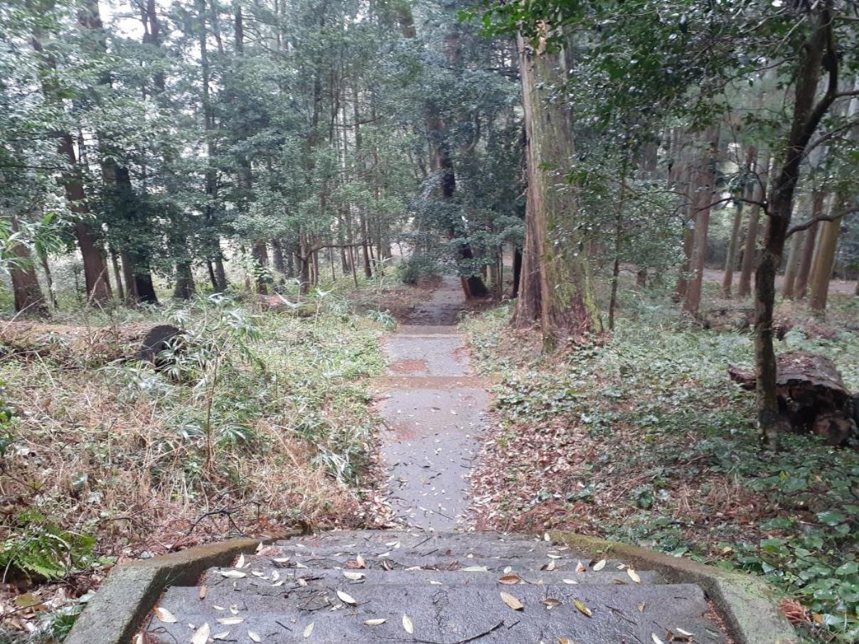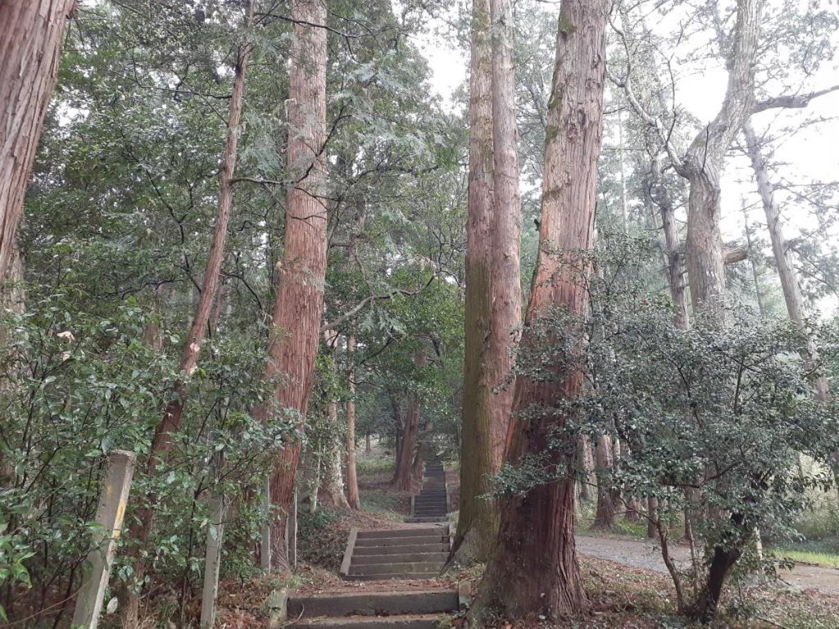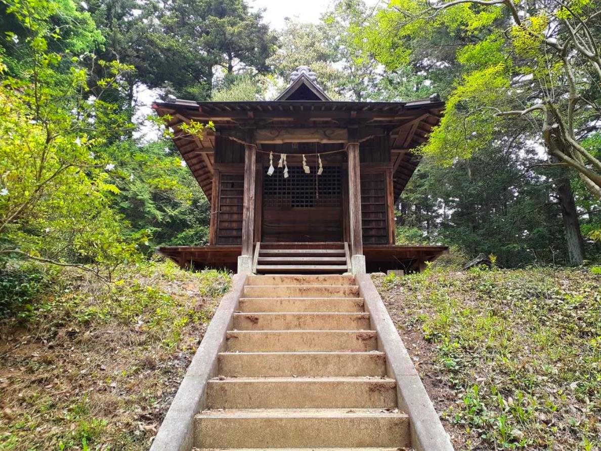 石段上に見える拝殿
